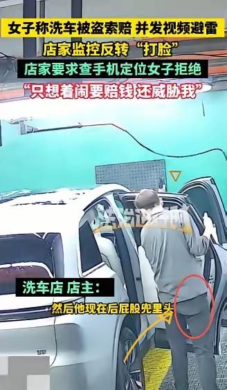 10月29日山西临汾,女顾客洗车后上演“碰瓷名场面”,哭喊顶配iPhone15ProMax等财物被盗,死咬18岁洗车工不放。 店主提议查定位自证,她却像见了猫的老鼠坚决拒绝,只一门心思要钱。监控一曝光直接打脸,洗车工无口袋裤兜扁如纸片,全程没碰过贵重物品存放处。 被戳穿后她溜之大吉,还拍视频网暴店铺。00后店主硬刚到底,甩监控维权,网友直呼“这波操作爽到飞起”!虚构事实碰瓷网暴,纯属搬起石头砸自己的脚~