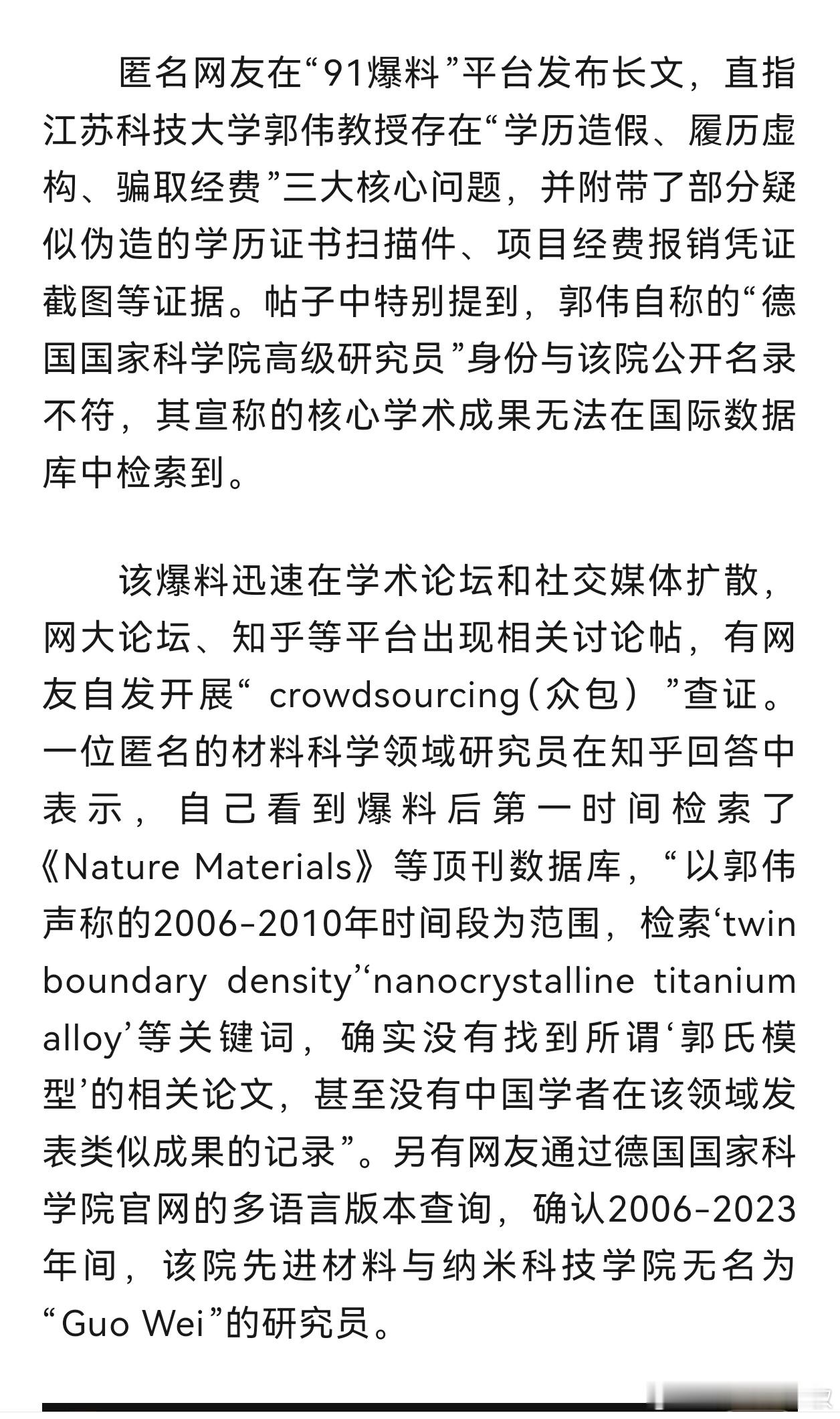 郭伟“教授”是被民间爆料和网络质疑掀翻的。主要是经历造假。并不是日常和他接触的博士生,同事,或者学校发现的。也就是说,他并不是现实水平不够。上半年,协和董小姐的时候,就说过,谁愿意走行政的路啊。如果有人帮她刷简历,文章,她变成名医,博导,是轻轻松松的。现实就是这样,很多人还傻乎乎的呀。