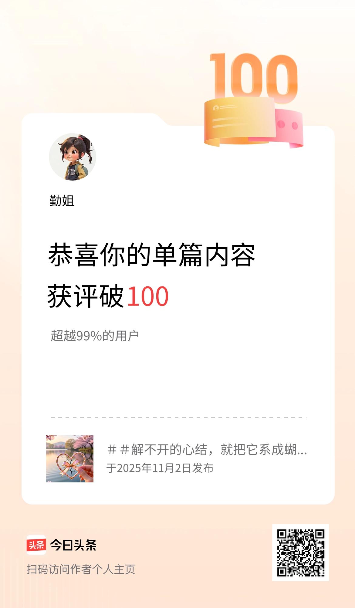单篇内容获评论量破100啦!