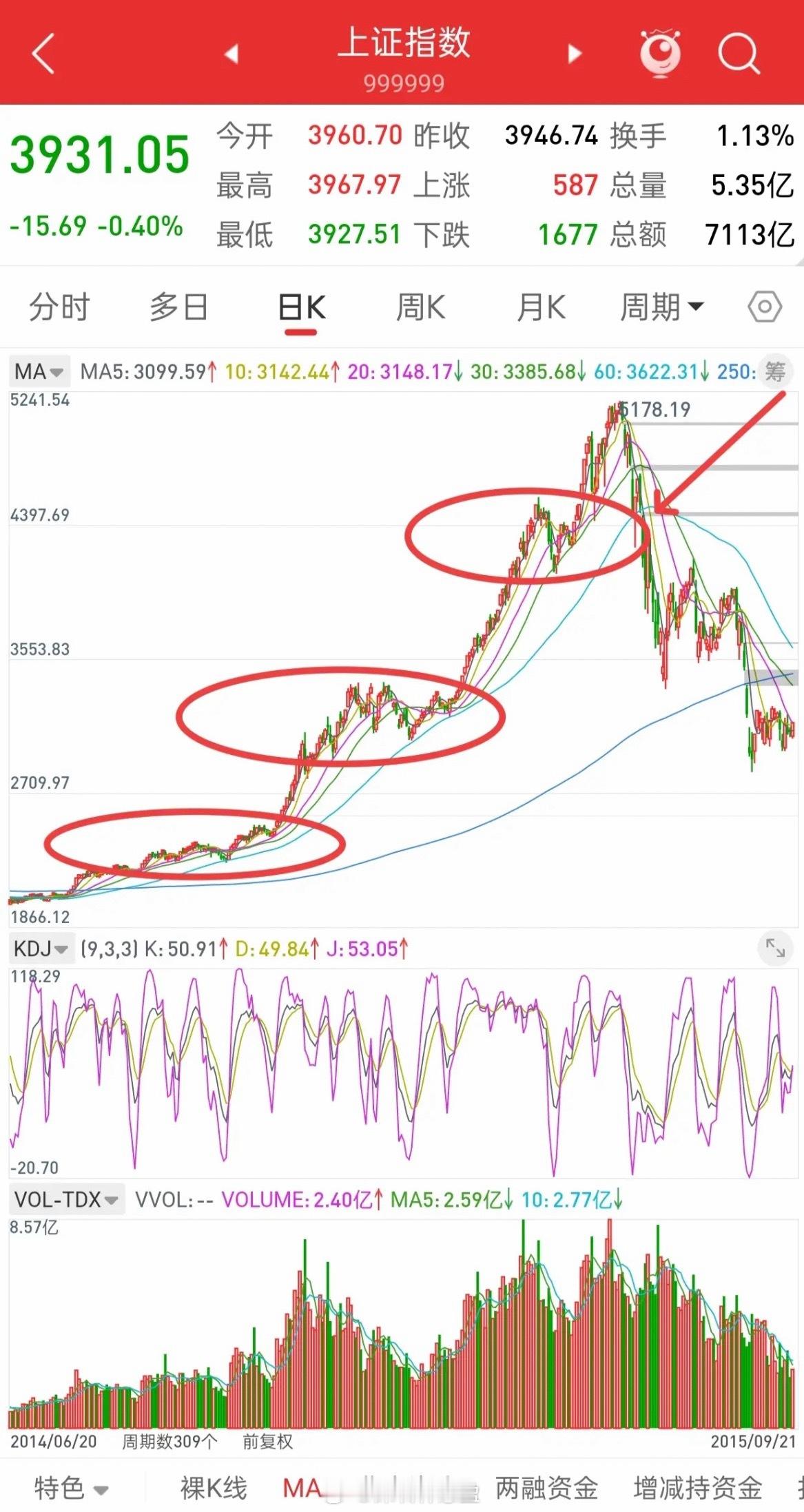 昨晚美股大跌,中国核心资产全线跳水,今日A股走势如何?今天大盘的走势就很关键了,因为经过连续几天的调整,成交量一直砸不出来,主力拿不到低价筹码,散户不割肉,行情就一直阴跌,一直磨。按照昨晚富时A50股指走势,今天大盘预计低开20点以上,大盘目前下方最后一个重要支撑,60日均线3900附近。有一点需要注意,60日均线可以理解为牛熊转折点,2015年那波牛市,每次阶段性调整,没有一次跌破60日均线,最多触及,或者摸一下。一直到最后见顶5178之后,跌破60日均线,牛市才彻底结束!因此,今天大盘是止跌企稳,还是继续下跌,就看60日均线得与失!60日均线可能是一波行情调整的最低点,即新一波牛市启动点,也会是牛市结束的标志!