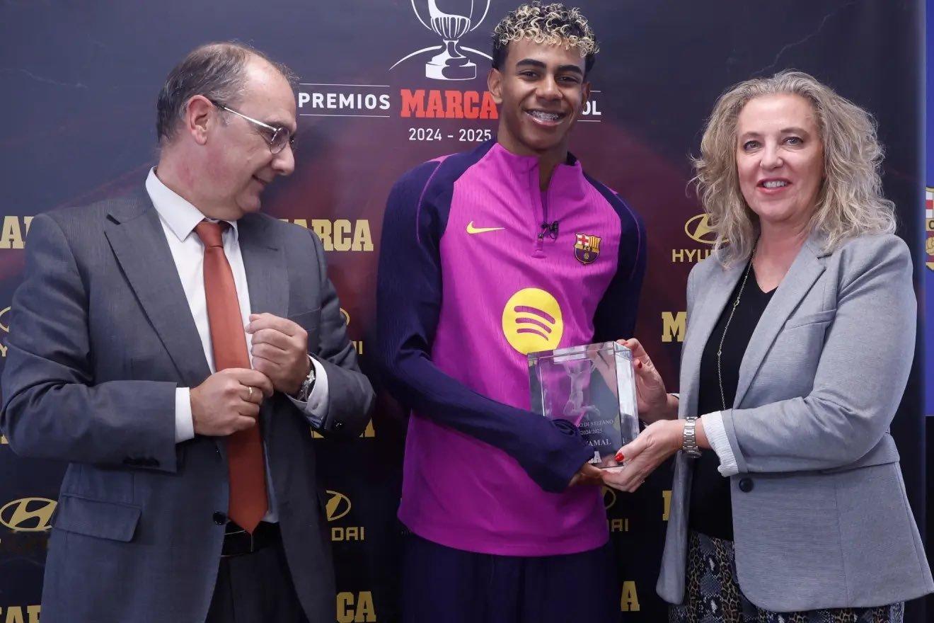 弗里克荣获马卡报颁发的上赛季西甲最佳教练奖,亚马尔荣获上赛季西甲最佳球员奖。