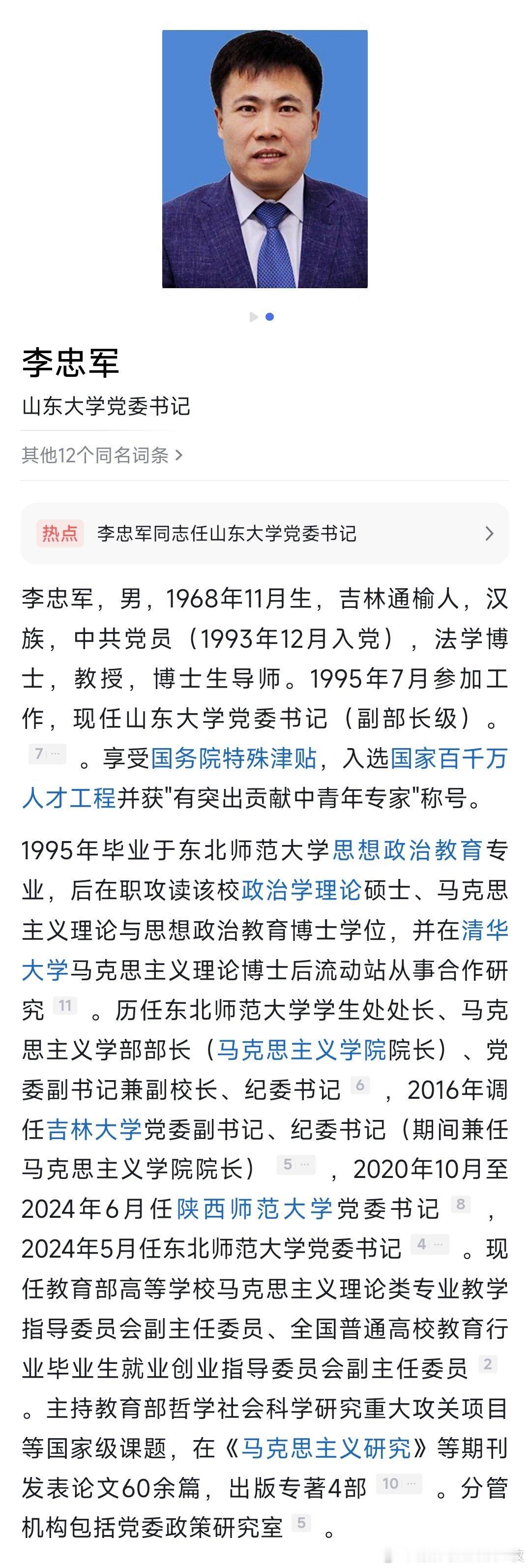 李忠军任山东大学党委书记(副部长级)。