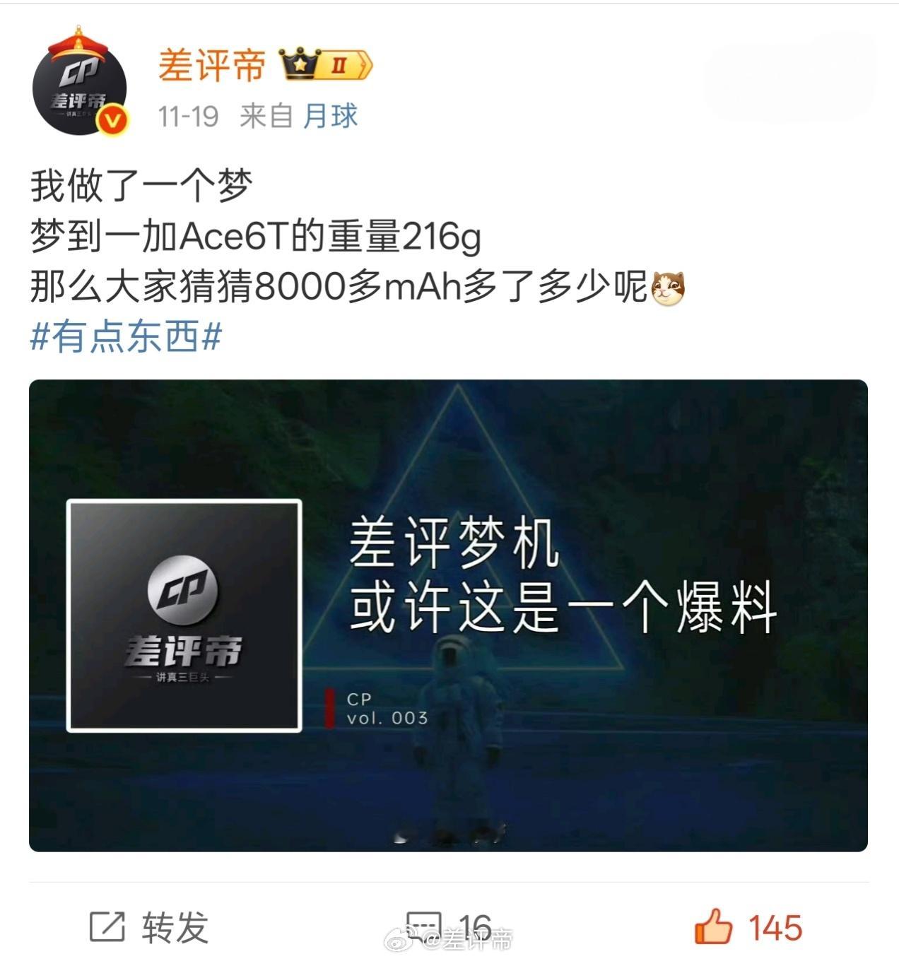 一加Ace6T,跑分超356万165Hz轻松拿下,有超大电池的他也只有216g这还不等?