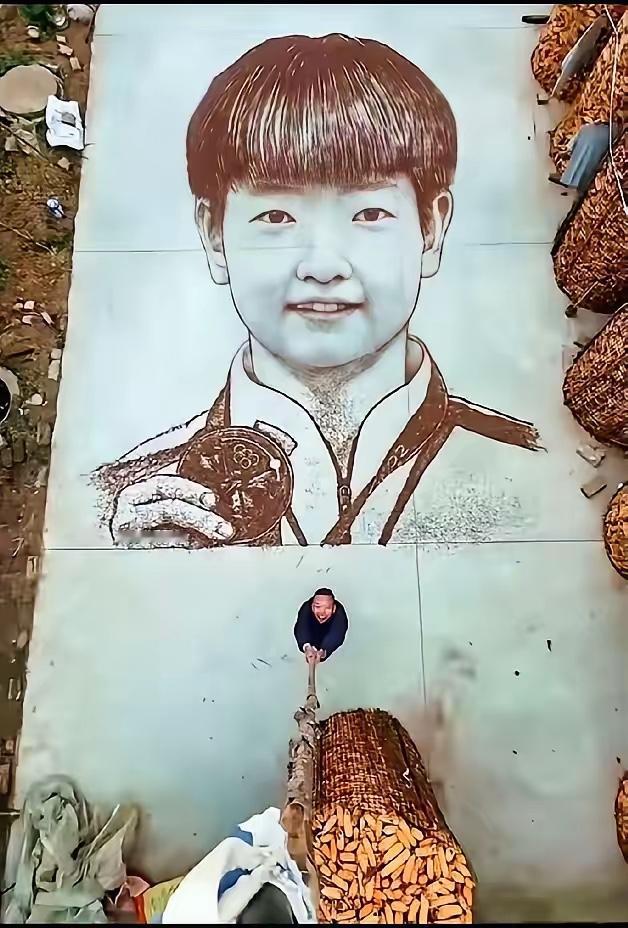 喜欢p图的人沉默了,喜欢用ai的人也沉默了,他们怎么也没想到,居然有一位来自山东乡村90后绘画博主周先生直接用谷物画了一幅莎莎的拿着金牌的像。 这幅画像是周先生谷粒一颗一颗摆出来的,从眼睛到嘴巴、到头发、到衣服最后到微笑着拿着金牌,从头到尾滴水不漏,把莎莎的样子刻画了出来。 说实话,真的很佩服周先生,看了网上这么多关于莎莎的画作,唯有他的画作让我眼前一亮,这样的画作直接就打败了那些用ai还有p图作的莎莎画像。 网友纷纷称赞: 谷物画呈现出的画面真实生动,给人强烈的视觉冲击,高手在人间,这是有多喜欢莎莎,画的太逼真了,莎莎好漂亮。 高手,用谷物作画,把我们喜爱的莎莎画的很好多。