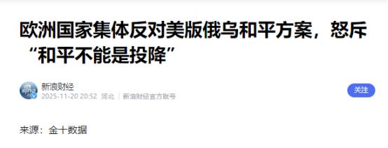 路透社:欧洲多国反对针对乌克兰的“屈辱性和平计划” 在布鲁塞尔举行的欧盟成员国外长会议上,各方未就这份28点和平计划的细节发表具体评论(目前计划详情尚未公开)。但参会的各国外长们明确表示,将坚决反对要求基辅作出屈辱性让步的主张,并强调任何协议都不得剥夺乌克兰的自我防卫能力。 法国外长让-诺埃尔·巴罗表示,“乌克兰人民渴望和平——一种尊重各国主权的公正和平,一种不会因未来侵略而受质疑的持久和平。但和平绝不能是投降。” 巴罗这话不是空喊口号,背后藏着欧洲各国的共同焦虑。最近美国和俄罗斯悄悄凑一起,草拟了一份28点和平方案,从头到尾都没让乌克兰和欧洲盟友参与,条款内容一漏出来,直接把欧洲外长们惹毛了。 这份计划最扎眼的地方,是逼着乌克兰认下“领土现实”。知情人士透底,方案明着暗着要求乌克兰放弃顿巴斯东部,连那些还没被俄军完全控制的区域都得让出去。它还要求乌克兰把现有武装部队砍半,手里的远程武器也得交出去,以后外国军队不能驻扎在乌克兰领土上。这哪里是和平计划,分明是让乌克兰卸下所有防备,乖乖任人摆布。 波兰外长西科尔斯基比巴罗更直接,他在会议上拍了桌子,说这么大的事,欧洲连个咨询的机会都没有,美国和俄罗斯就私下定了调子。西科尔斯基特别强调,该被限制的是俄罗斯的侵略潜力,乌克兰的反击能力半分都不能少。这话戳中了不少东欧国家的心思,波兰、立陶宛这些和俄罗斯挨得近的国家,最清楚乌克兰要是垮了,下一个麻烦可能就轮到自己。 欧盟外交与安全政策高级代表卡拉斯也站出来表态,他说任何和平方案想行得通,必须得过乌克兰和欧洲这两关,少了一方都不算数。卡拉斯的话里藏着不满,美国这次的操作确实太霸道,作为欧盟的核心伙伴,制定涉及欧洲安全的计划时,居然把欧洲晾在一边。 欧洲各国的反对不是装装样子,他们有自己的算盘。俄乌冲突打了这么久,欧洲给乌克兰送了不少武器和物资,可不是为了最后逼乌克兰投降。要是真让乌克兰割地裁军,就等于承认侵略能换来好处,这会让欧洲的安全防线彻底松动。德国总理府的一名顾问就私下说,今天能让乌克兰让领土,明天俄罗斯就可能盯着波兰的加里宁格勒,这种口子绝不能开。 乌克兰那边更是气不打一处来,乌克兰总统办公室顾问波多利亚克直接戳破,说这份计划就是让乌克兰无条件投降。泽连斯基也公开证实,已经和美国方面磋商,但明确表示不会接受任何损害主权的条款。乌克兰士兵在前线打了三年多,死了那么多人,现在让他们放弃国土,无论是军方还是民众都不可能答应。 更讽刺的是这份被美国吹成“以实力求和平”的计划,连俄罗斯都不买账。俄罗斯外交部发言人扎哈罗娃直接说,俄方不接受这种“冻结冲突”的方案,他们要的是有法律约束力的协议,能彻底解决冲突根源。美国想两头施压促成和谈,结果把俄乌和欧洲全得罪了。 美国的小算盘其实很明显。特朗普政府想在100天内结束冲突刷政绩,就想出这种简单粗暴的办法。他们觉得乌克兰打累了,欧洲援乌也有点力不从心,逼乌克兰让步就能快速收尾。可他们忘了欧洲人最看重的安全逻辑——今天牺牲乌克兰,明天就可能牺牲自己。 布鲁塞尔的外长会议没给出具体解决方案,但传递出明确信号。欧盟委员会主席冯德莱恩最后总结时说,和平的前提是尊重乌克兰的选择,这是不可动摇的原则。现在看来,美国想靠一纸“屈辱性计划”结束战争根本不现实,没经过乌克兰和欧洲同意的和平,从来都不是真和平。 来源:新浪财经