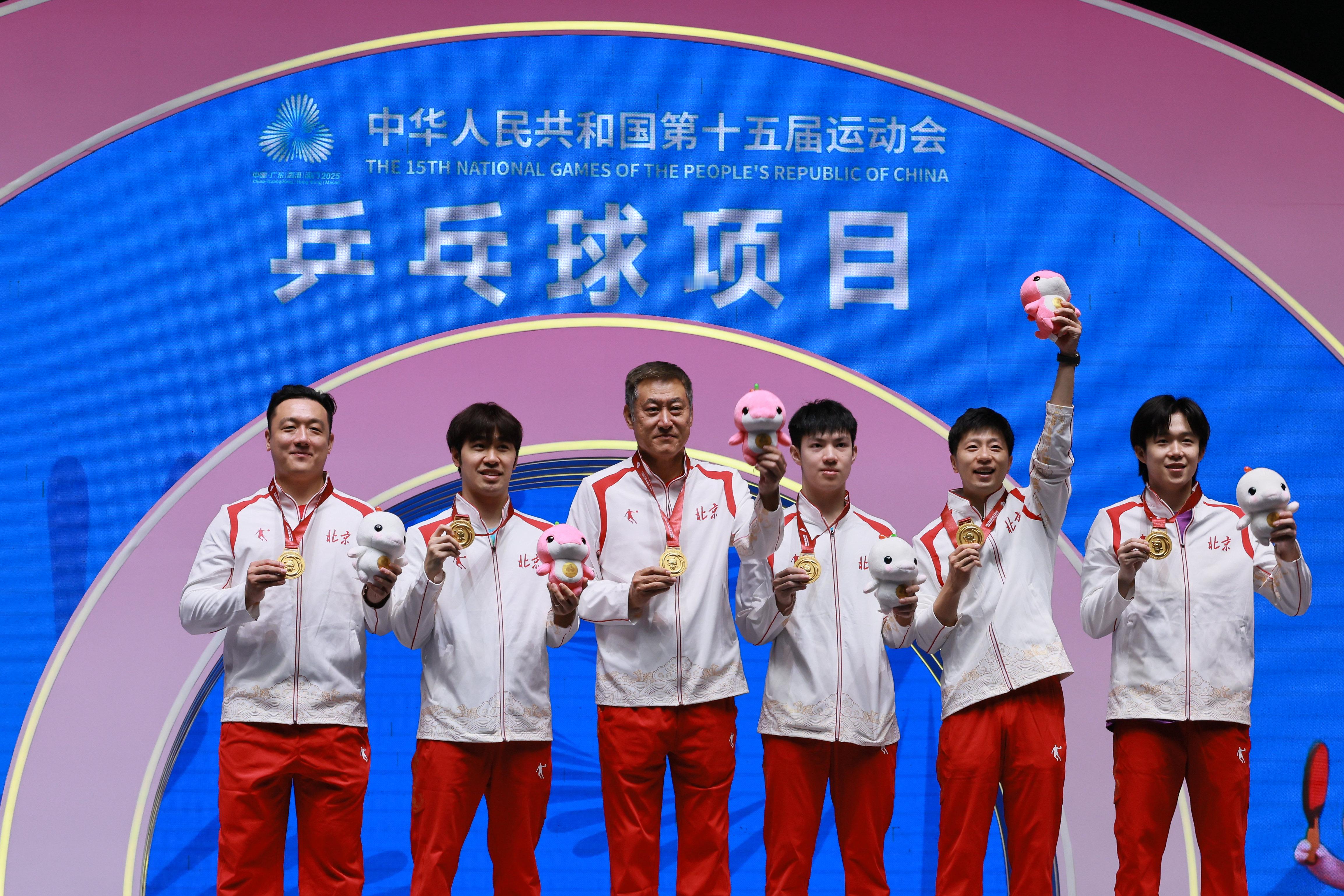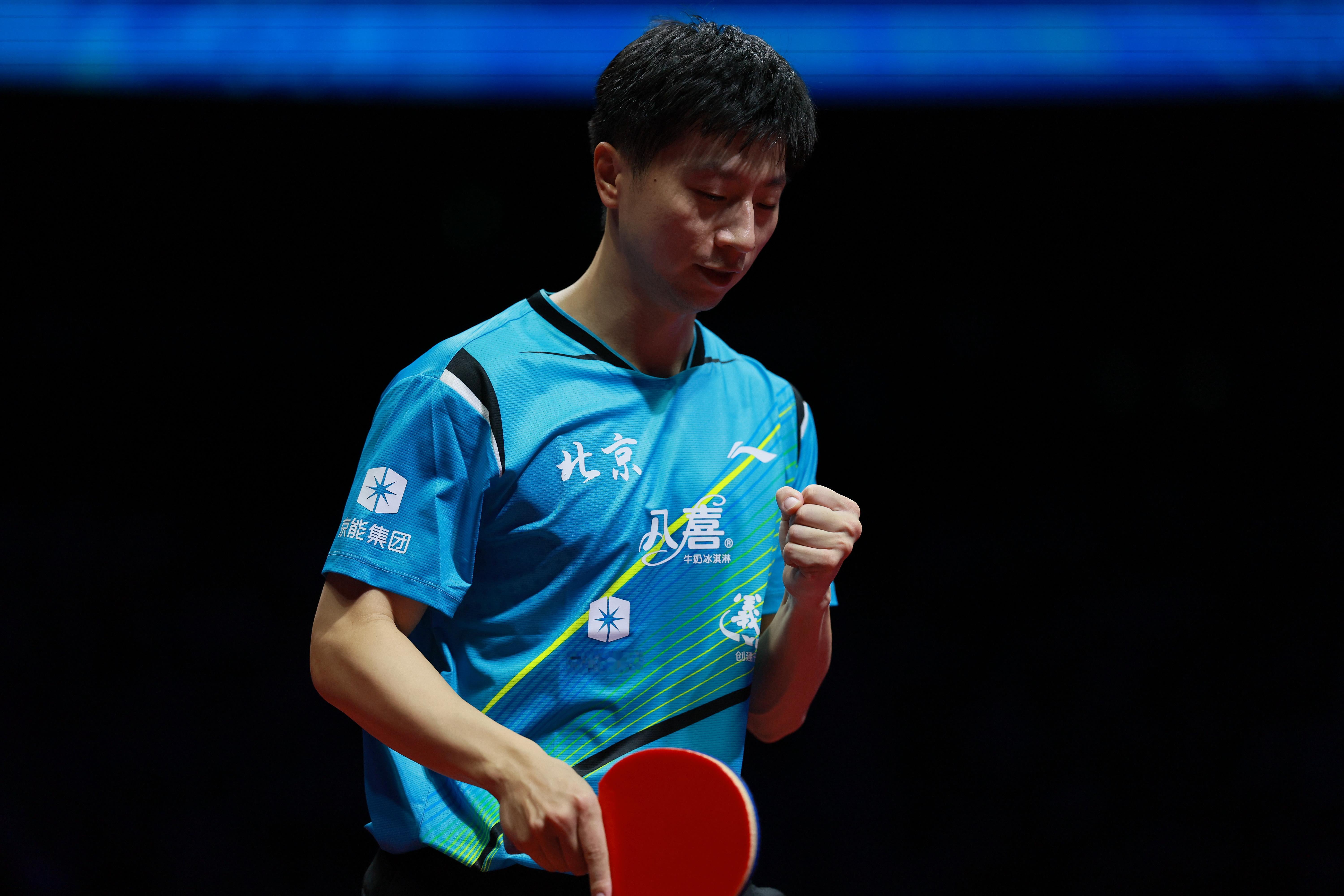 中体抓拍到了马龙率先举起大湾鸡这一幕