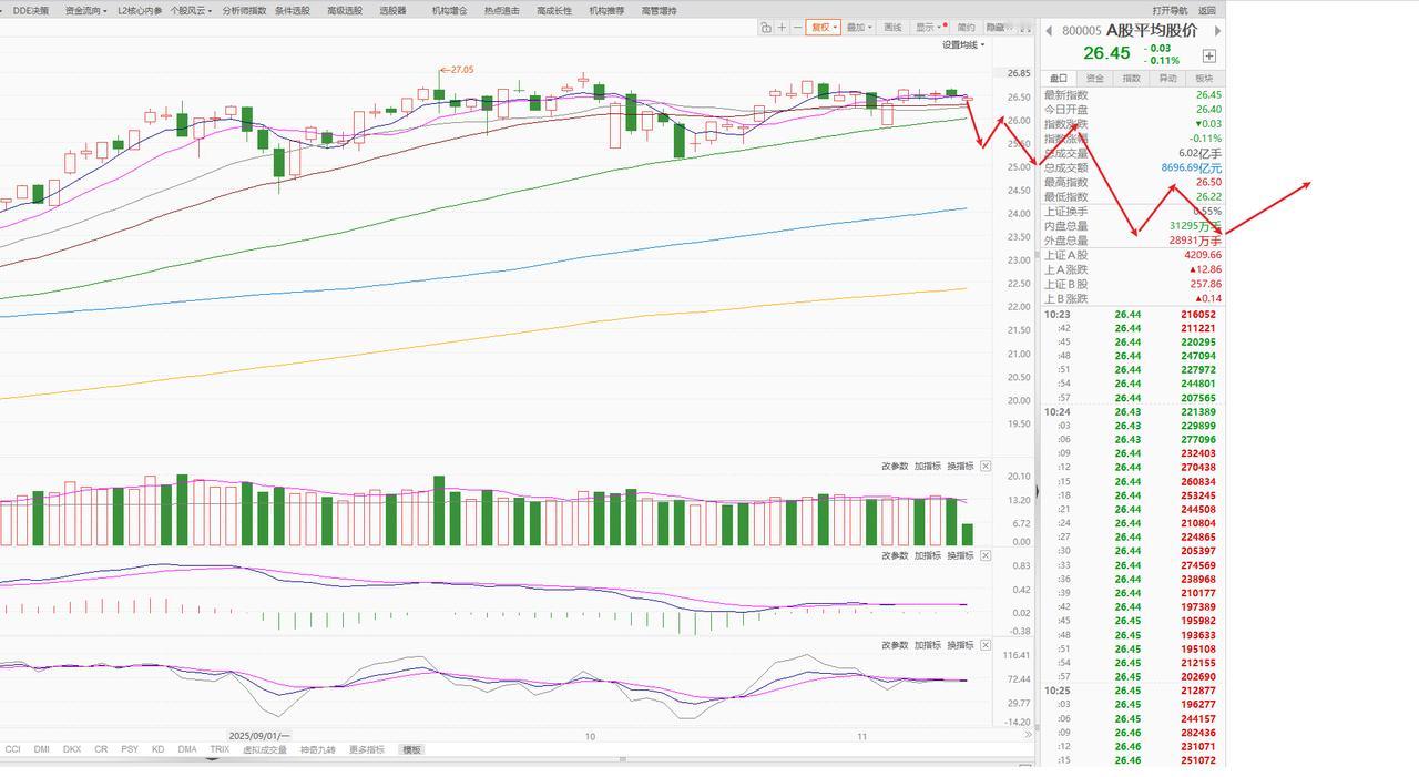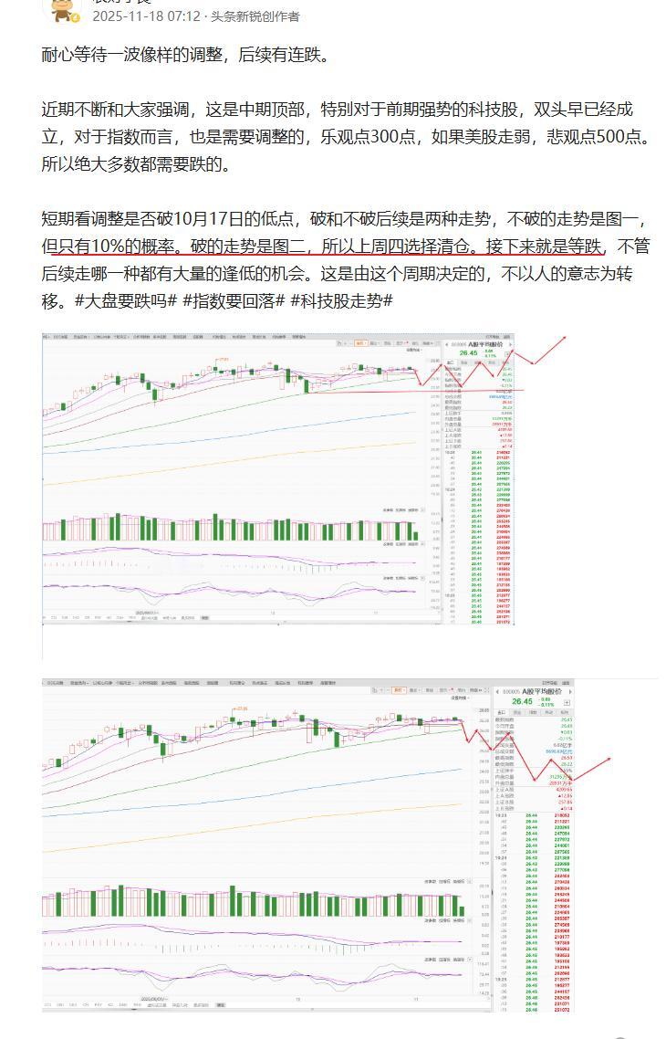 空仓之后,大跌之时,感觉遍地黄金。 好了,下周三可能会有一个低吸的机会。 平均价指数已破10月17日的低点,那就是这张趋势图了 未来一段时间都是大跌普跌买,做个短线即可。 90%的概率就是极高的风险了。 周末细化下未来的趋势图 提前预测,不做马后炮。 股市短期不可预测,因为影响太多 但趋势一定是可以预测的