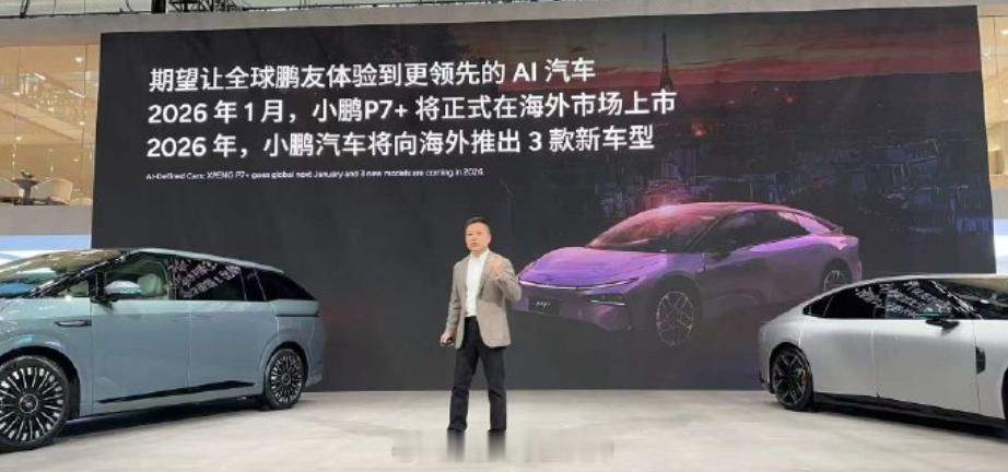 在上,何小鹏表示:-2026年1月,小鹏P7+将正式在海外市场上市,2026年全年,小鹏汽车将向海外推出3款新车型;-小鹏汽车开启「一车双能」产品大周期:2026年将推出7款一车双能车型。其中,2026年一季度,3款鲲鹏超级增程车型将率先上市