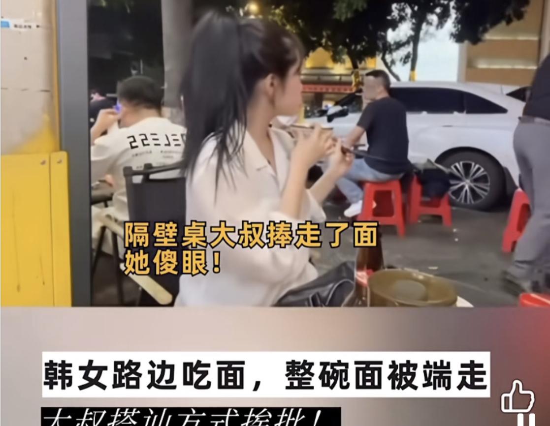 当我们还在笑话韩国人吃不起泡菜的时候,殊不知别人也在笑我们没见过女人。事情起因是一名韩国女子来到中国广州出差,到饭点时她在路边开心吃面,突然隔壁桌的男子走过来将她的面端走,随后他们邀请她坐过去一起吃饭,甚至还要了她的vx。 女子对他们的行为感到十分惊讶,没想到在大城市光天化日会遇到这种事,她明显愣了一会,随后果断拒绝了添加联系方式的要求,没想到他们不仅没有停下他们的行为,甚至还做出凑脸、对她吐烟圈、语言轻佻等行为。 最后女子没办法不能不求助她求助店员和老板,这才拿回自己的面条。 事后女子把视频发网上,播放量高达240万,此事也引发海外关注,不少韩国网友对此表示不满,认为这种行为很没礼貌。 真的是丢人丢到国外,几颗老鼠屎坏了一锅汤,虽说是个例事件,可别人看到的还有整个城市的形象。