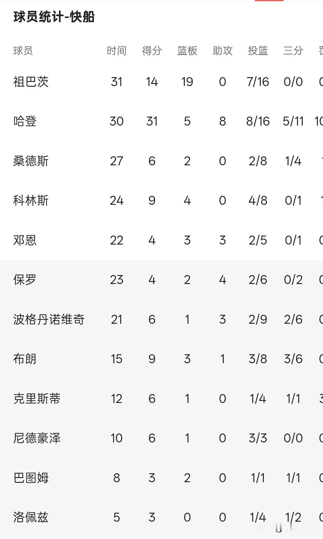 NBA积分榜丨快船101-129惨败魔术,哈登带队近10场比赛输掉9场。 魔术队单节得分都在30分以上,快船全场落后,祖巴茨14分19板,哈登31分5板8助,只两人表现合格,其他无人上双。 快船队是一波七连客的赛程,接下来还有三个客场要打,哈登本赛季场均26.2分6.3板8.7助,莱昂纳德缺阵让球队变得一胜难求。