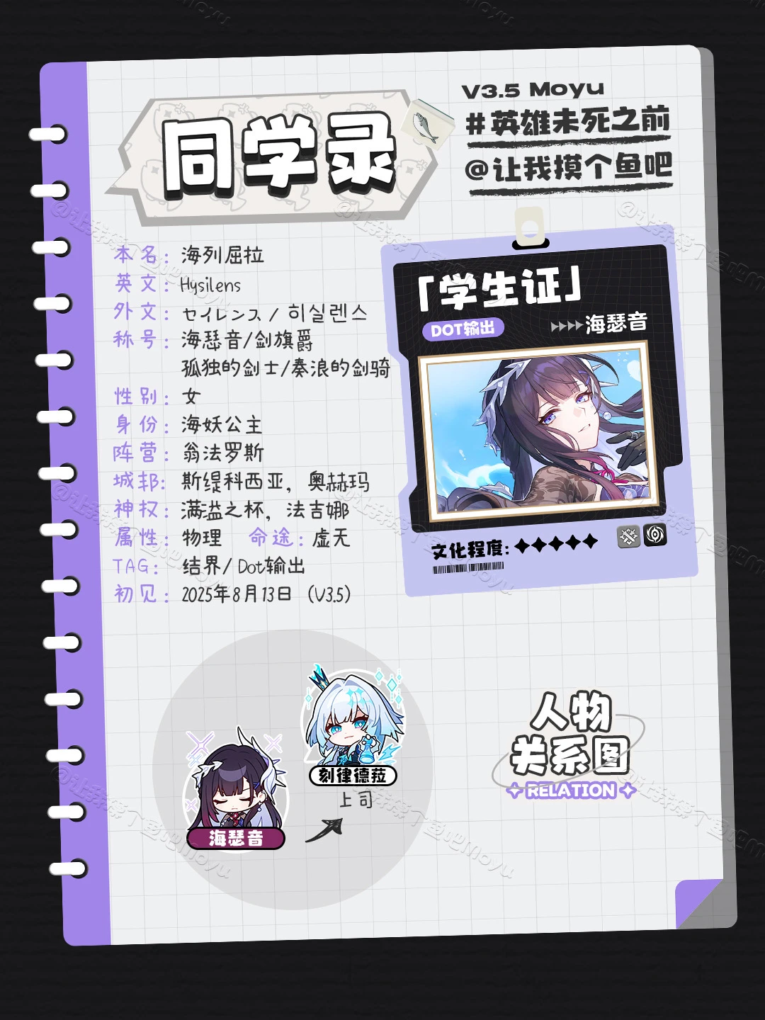 崩坏星穹铁道 崩坏星穹铁道创作者激励计划 让我摸个鱼吧Moyu 星穹铁道日更挑战 星穹铁道攻略 星穹铁道翁法罗斯 星穹铁道海瑟音 英雄未死之前 二次元账号进化论 将将!我是摸鱼🐟 (。•̀ᴗ-)✧ DOT队新成员来袭,是海的女儿! (冲啊,DOT队赛高!) 本期的主角就是他 —— 骑士统领·『海瑟音』! —————— ฅ՞• •՞ฅ ——————— 🔘创作不易,严禁任何商业性转载及搬运 🔘制作难免会有错漏,希望大家多多提建议 🔘祝大家都能十连双金