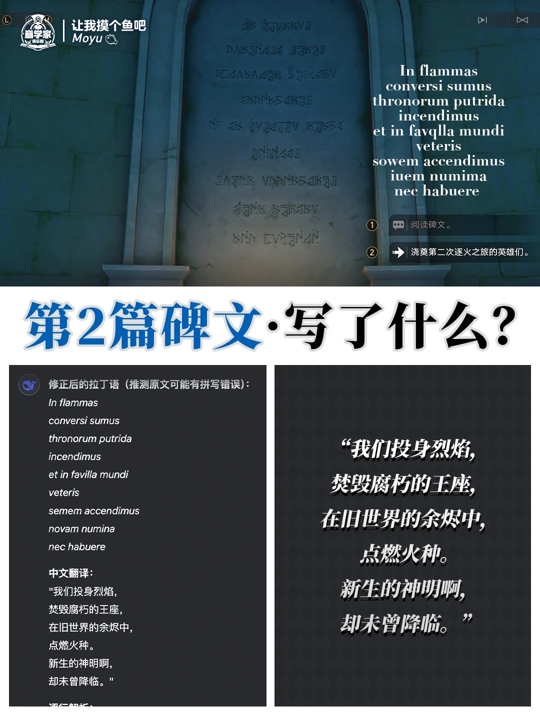 过剧情的时候就想知道这上面到底写了啥 对照翻译以后发现根本读不通[呃R] 求助了DS老师发现原来是拉丁文, 成功翻译出来了!(mhy大楼里发出轻哼 又是一个不停发刀子的版本,可恶!