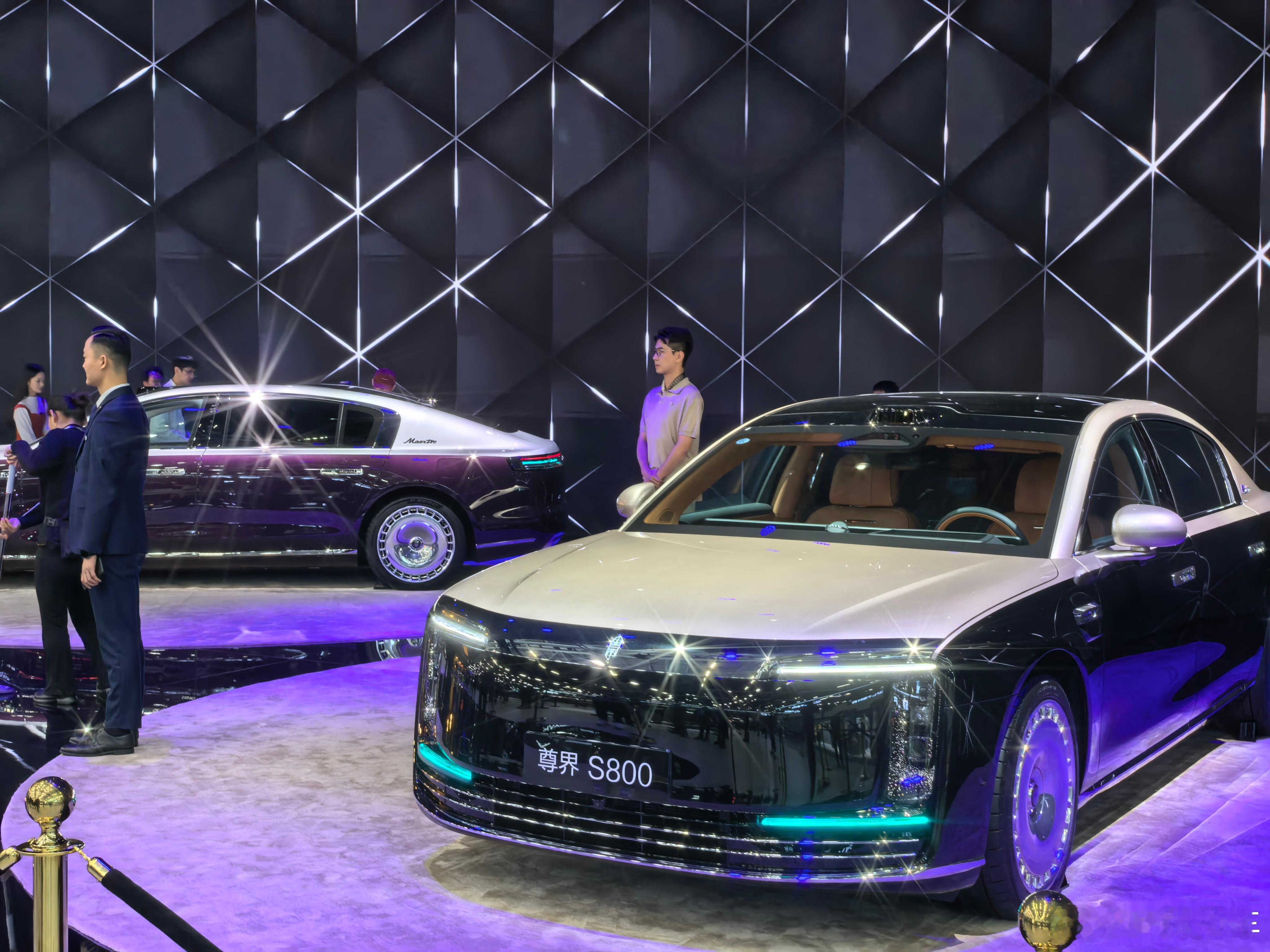 鸿蒙智行展台五界聚首,流光银的S9很帅,S800够尊
