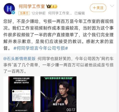 其实被吓到了,也只是没想到自己说的有这么大影响,特别是少了商单
