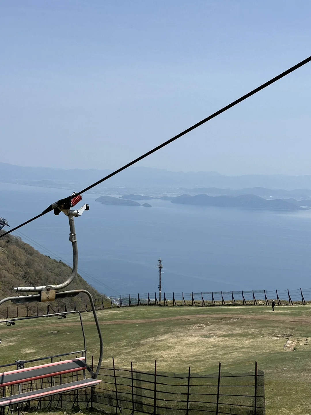 😍缆车体验很好,第一段缆车幅度很大,二三段缆车悬空很独特,蓬莱山坐在山顶的草地上看远处琵琶湖,放空那一刻真的没烦恼了