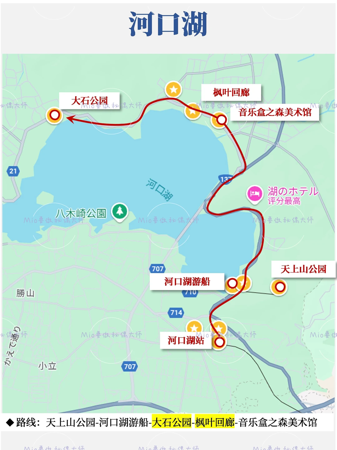 📍河口湖:景点都是为看富士山服务的,枫叶景点集中在河口湖北的枫叶回廊