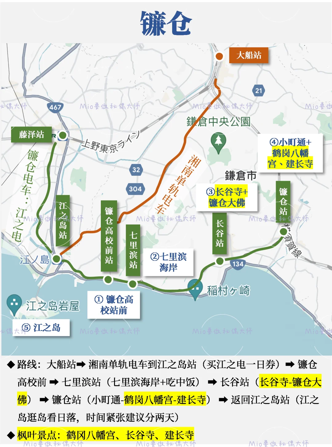 📍镰仓:枫叶景点长谷寺、鹤岗八幡宫、建长寺,本身也都是一日游经典路线