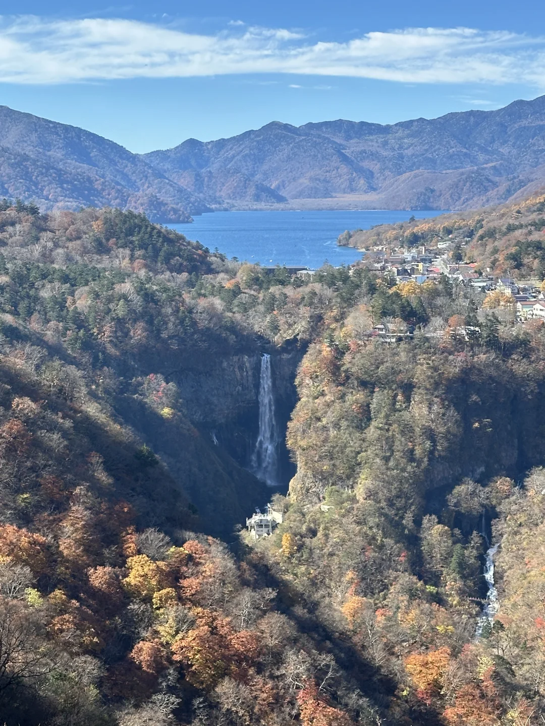 📍日光:一个非常值得游玩两天的城市,结合风景和人文的城市,枫叶季明智平缆车上观景台看对面中禅寺湖瀑布风景一绝