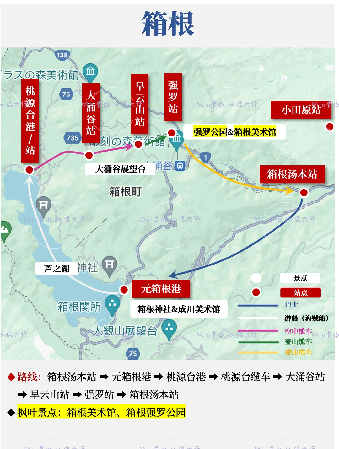 📍箱根:箱根美术馆和箱根强罗公园是枫叶点,另外坐船游览芦之湖路途上也能看到