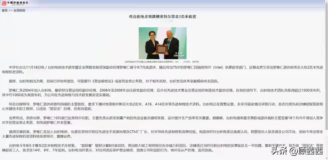 防了大陆几十年,却被自家“二把手”捅刀?台积电这场千亿级泄密案让人惊掉下巴! 今年7月底,75岁的台积电前资深副总罗唯仁退休,谁能想到三个月后,他直接带着公司2纳米核心制程机密,高调加盟老东家英特尔。 要知道,这位大佬在台积电干了21年,主导过10纳米制程量产、引进EUV光刻技术,拿下过15000多项专利,是公司妥妥的技术灵魂,台积电还特意为他延后8年退休。 可他本就是美国公民,早年在英特尔待了18年,如今英特尔深陷先进制程困境,过去12个月亏了188亿美元,罗唯仁的到来无疑是“雪中送炭”。 更关键的是,台积电本应有的竞业禁止协议,他要么没签,要么因美国籍无法执行,让核心机密轻松被卷走。 台积电花千亿砸出来的技术壁垒,终究栽在了对美国的过度信任上。这事儿也给所有科技企业提了醒:核心技术的防守,可不能找错了方向。