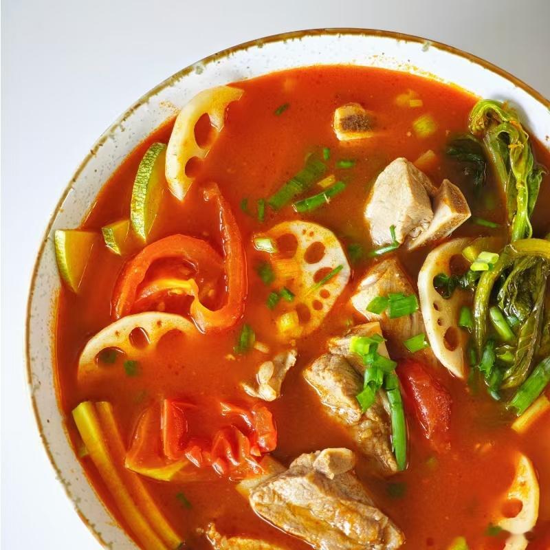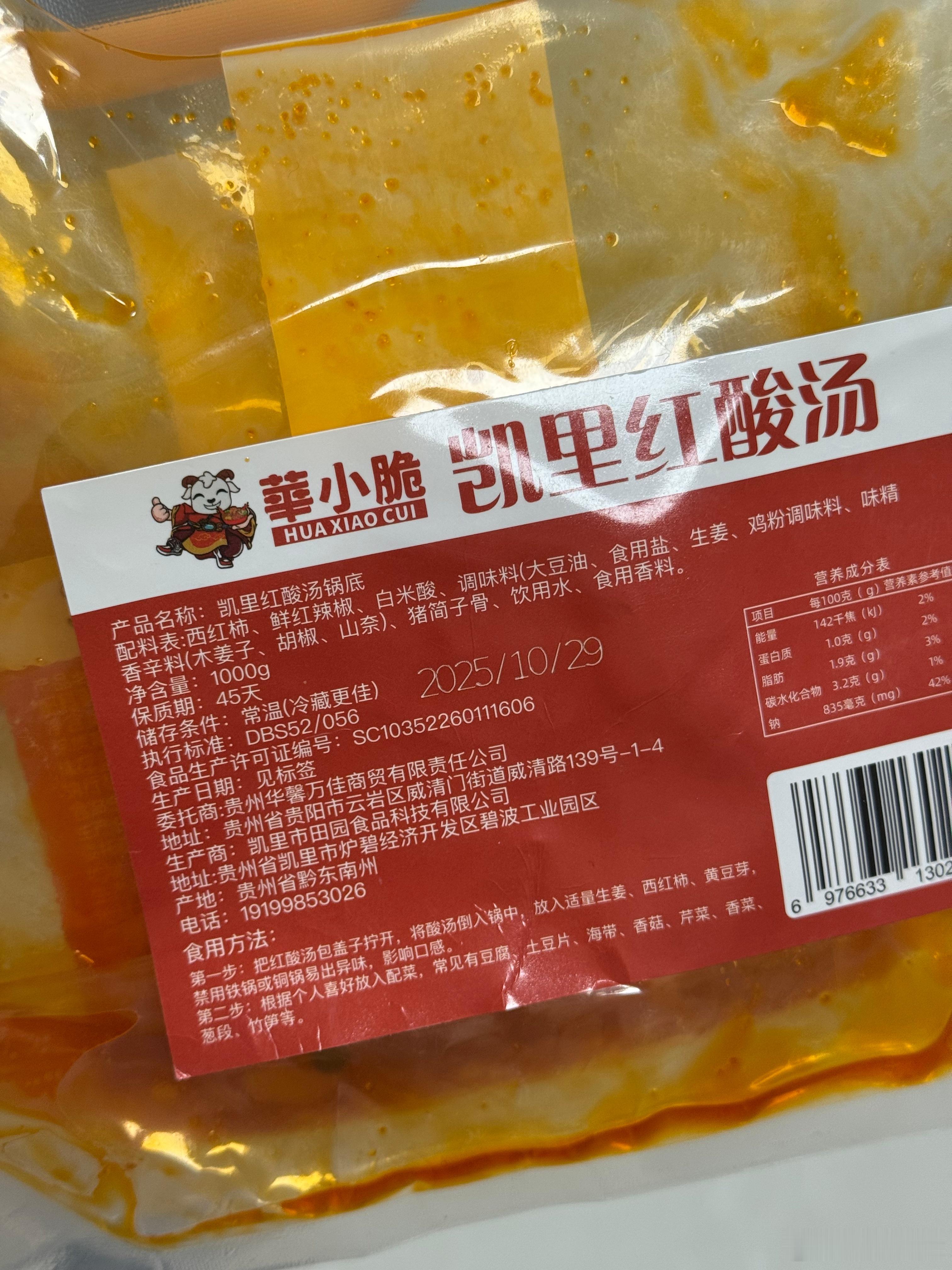 昨天试样的凯里红酸汤,味道很不错,酸味浓郁,配料干净,煮了软哨、牛肉丸、豆腐皮和一些蔬菜,都挺合适,吃完身上很热乎,适合喜欢吃又要控制体重的朋友,一袋2斤16.8元,很适合囤货。昨天试样整个公司的小伙伴都觉得很好吃~全程无添加,不人工催化,传统工艺万坛自然发酵制酸,是足足发酵的自然酸,能保持酸汤的新鲜度和品质,每一滴红酸汤都酸得纯粹自然。低脂低卡低热量美味无负担,解腻消食健脾,水煮菜的救星,即便是减脂期的朋友也可以放心大口炫。做法很简单,酸汤入锅不需要再加水,可以根据口味调味,烧开后放入食材煮熟,轻轻松松即可完成一顿美味,万物皆可酸汤煮,煮啥啥都超级香,厨房小白也能秒变五星大厨。