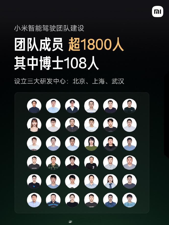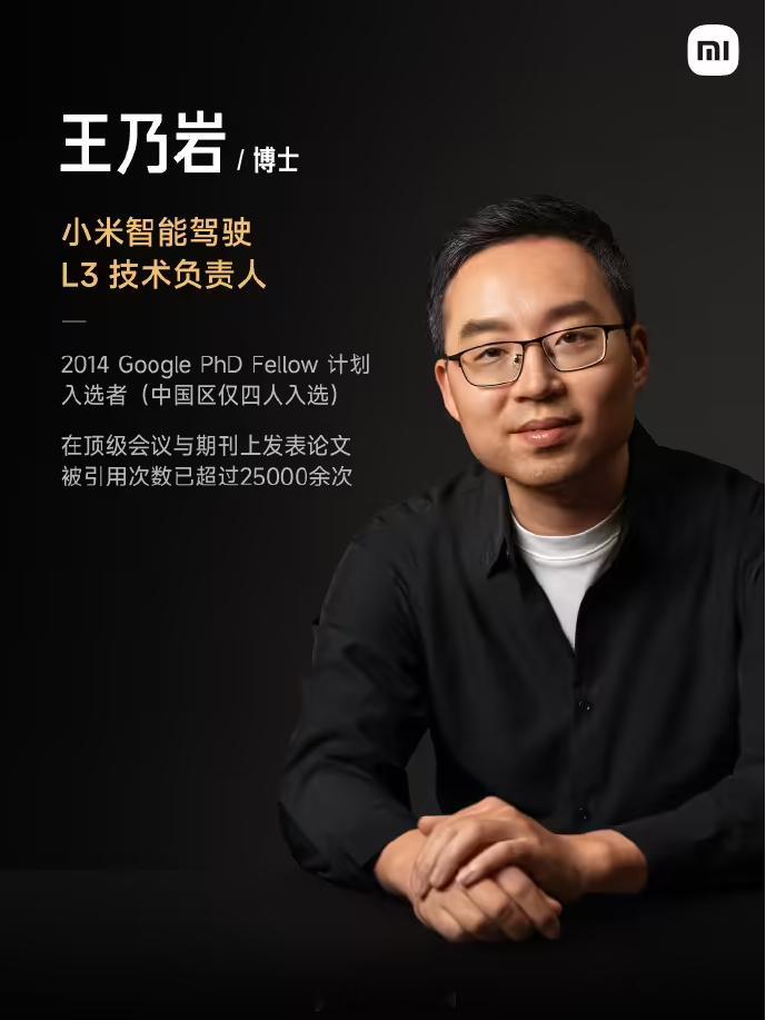 小米汽车在辅助驾驶领域的投入将持续加大,2025年在AI领域的研发投入超过70亿人民币。 目前,小米智驾团队成员已超过1800人,其中包括108位博士。小米汽车特别介绍了四位核心成员:叶航军博士、陈光博士、陈龙博士和王乃岩博士