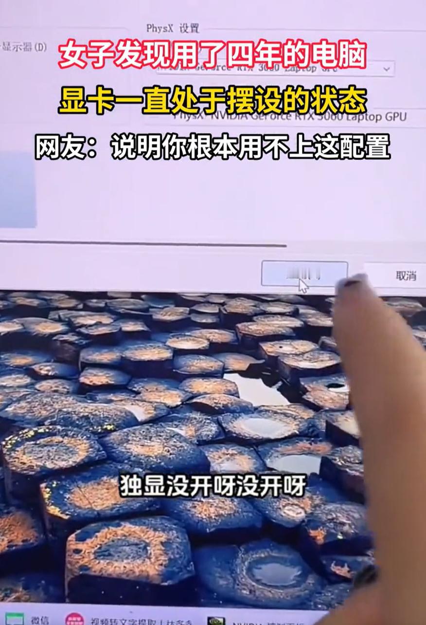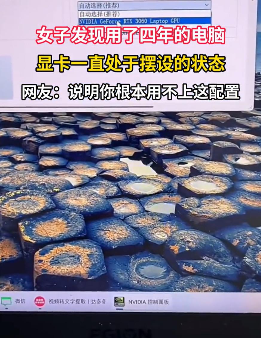 “果然是电脑小白!”一女子发现,自己用了四年的电脑,显卡竟然一直都没有打开过,突然觉得这个配置都白瞎了,可当她把这个发现发到网上,网友看后表示:妹子以为自己懂了。结果还是不懂 女子介绍,平时她用电脑也就是办公、看视频,从来没觉得画面有什么不对,这天在无意中点开电脑的控制面板时,发现自己的显卡设置一直处于“自动选择”模式。她一时好奇,手动切换到了3060独显上,结果整个屏幕瞬间变得清晰明亮。她惊讶地意识到,这四年来,她的独立显卡可能压根就没被调用过 当她把这个惊喜发到网上后,不少网友纷纷给她进行科普 有网友说:这是自动的,普通的不会启动独显,这样能耗低,等到玩游戏就会自动启动 还有网友表示:电脑白菜,没玩游戏根本不会应用到。为了省电自动用核显。现在手动开了,电池持久性又降了 其实,像她这样的人并不少。我们很多人用电子设备,都只停留在表面操作,对背后的运行机制几乎一无所知。有时候稍微深入一点,就觉得自己“懂了”,但可能只是从一个误区走进了另一个误区 很多电子设备在用户体验上都有某种“隐形分工”:系统默认的设置,往往是在性能与能耗之间做了平衡。如果我们不去主动调整,可能永远察觉不到;而一旦调整了,又未必真的适合日常使用