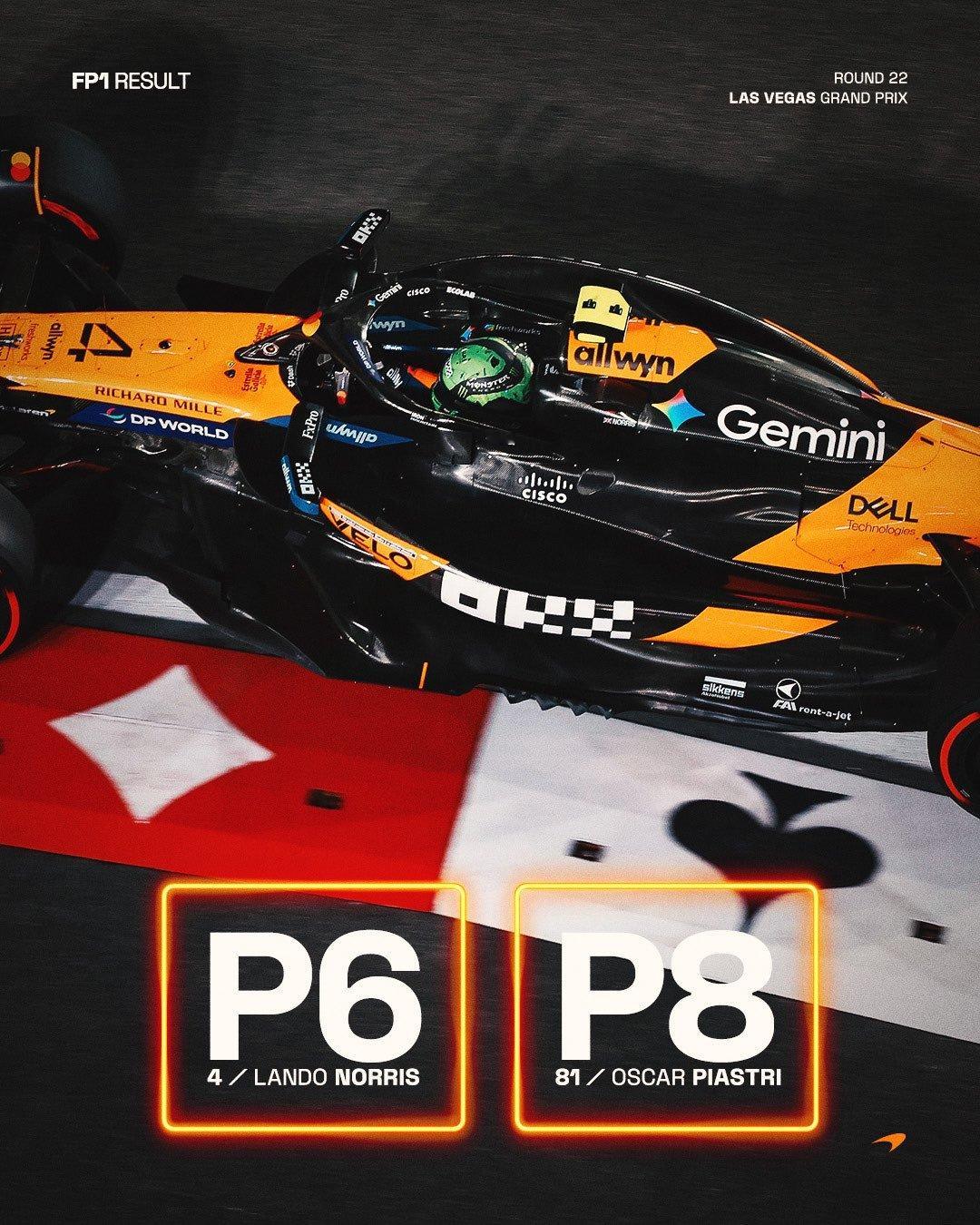 2025赛季F1拉斯维加斯🇺🇸大奖赛FP1各车队车手成绩海报!👀