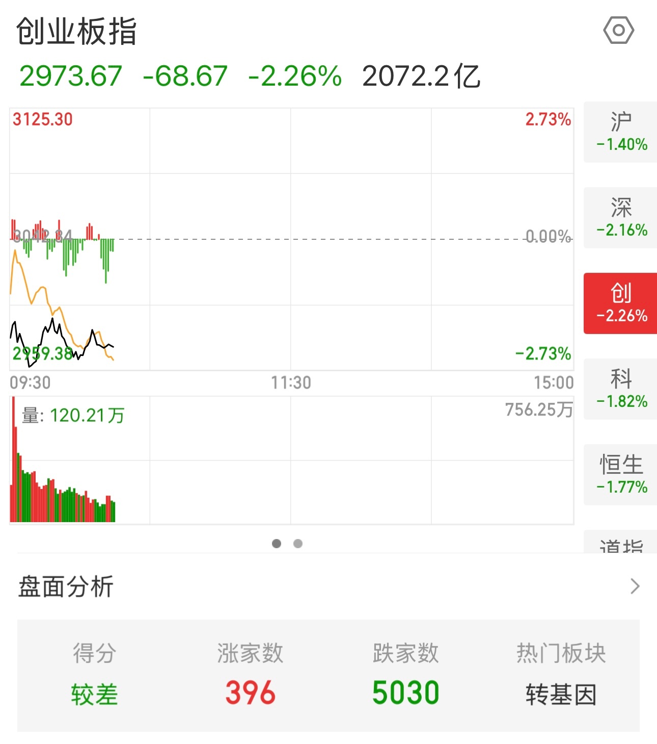 5000多只股票下跌,赶紧截图,好像今年第一次看到。老周看到的是5030家公司下跌,觉得股市钱难赚。个别嘴硬的网友看到的是396家公司上涨,然后说,你看,还有400家公司上涨呢,还是能赚钱的,你的股票跌了,说明你选股不行。只要选股厉害,指数大跌也能赚到钱。嘴硬的网友赢麻了。