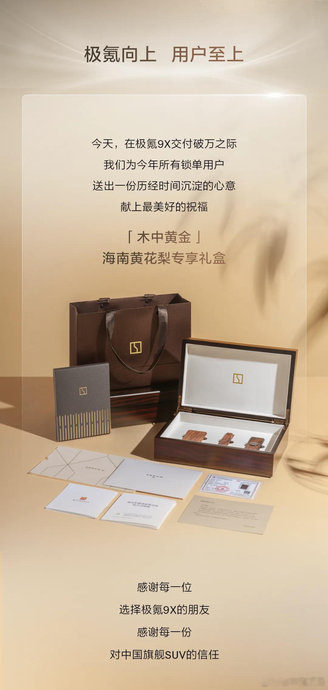 你也是会搞点惊喜的,一大早9x车主们突然就收到了一个黄花梨礼盒,有无事牌➕点烟器➕印章,已下单,期待收货冷知识,吉利在海南有一整块黄花梨田我记得之前办吉利婚礼的时候,每对新人还人手种了一颗