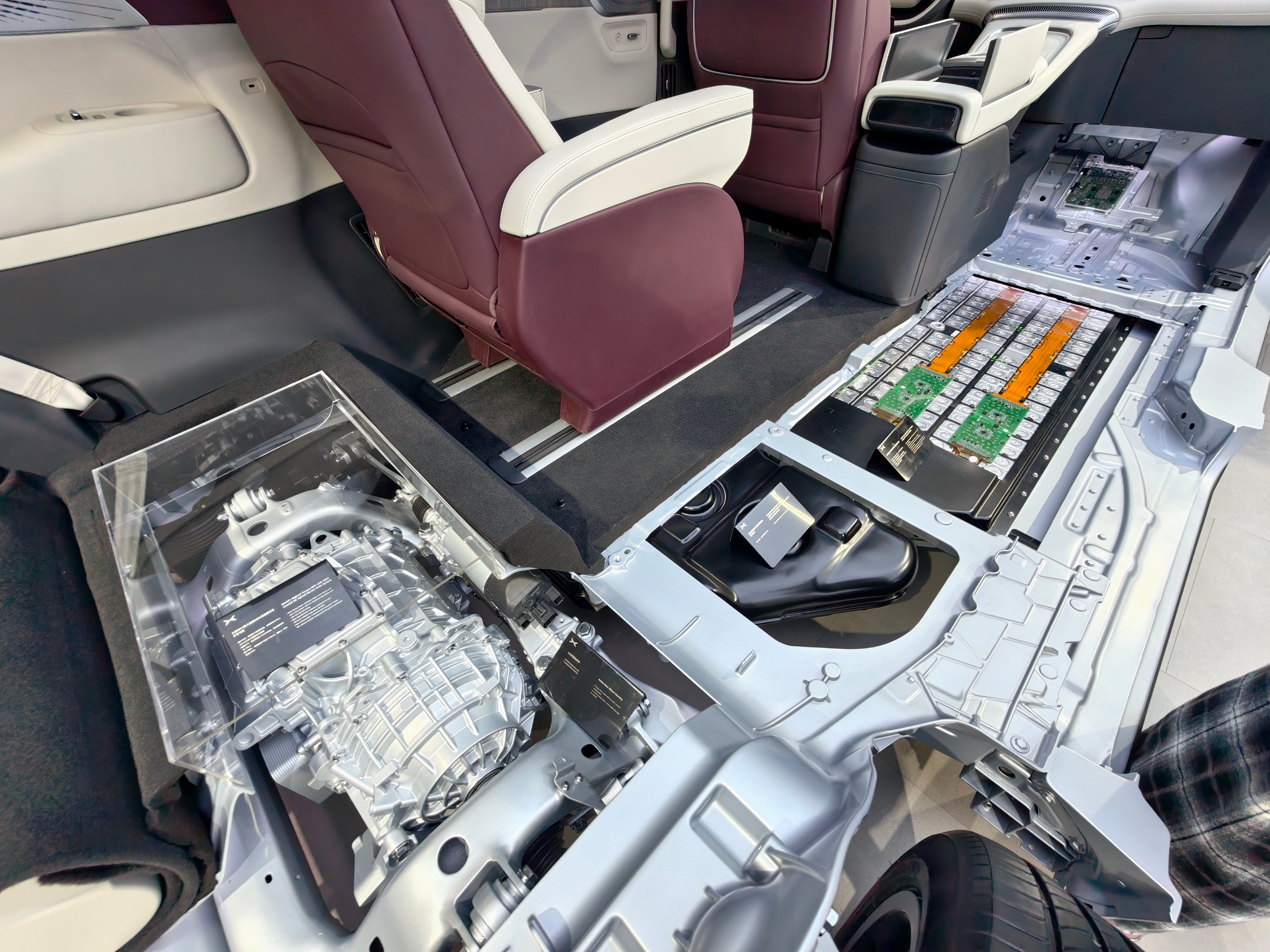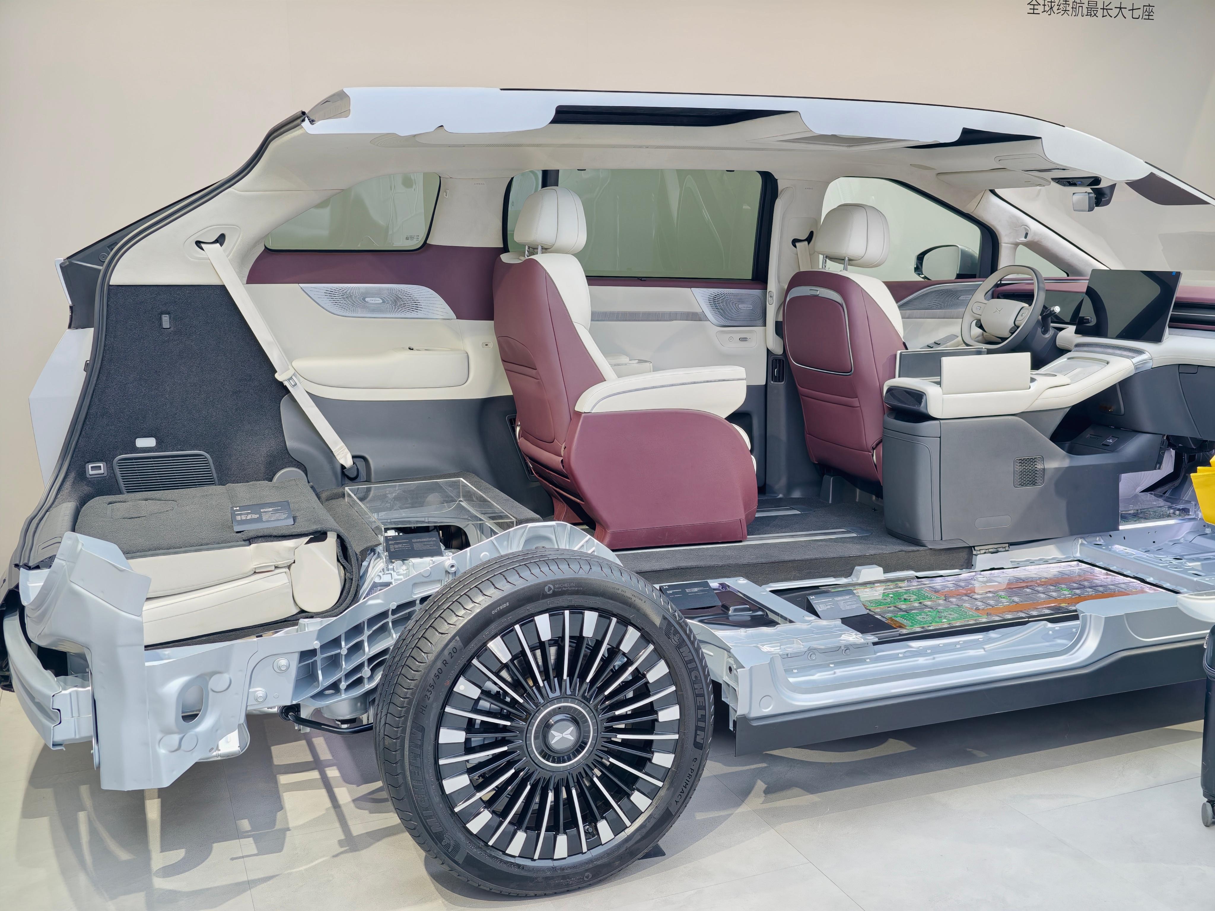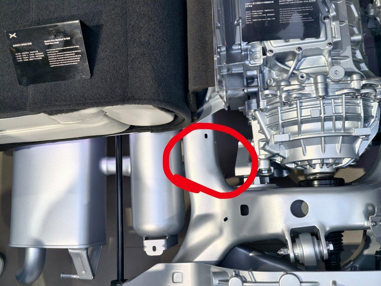 昨天晚上刚刚开完发布会,今天在车展上小鹏还能聊一些啥呢?他们竟然还是有不少新的消息。昨天晚上X9 REEV订单分布,北方用户占了50%+,说明不少北方用户正在等这么一个产品。Ultra版本占比79%,智驾的溢价被肯定。明年Q1马上会有很多新的REEV产品跟上。但是差异化竞争的难度肯定会比非常有特色的X9难很多。从0到50万台,小鹏用了82个月,50到100万是14个月。但更吸引人的还是X9这套增程后桥。展具上还没有做出排气管来(图9位置)。如果放上去的话会更震撼一些。