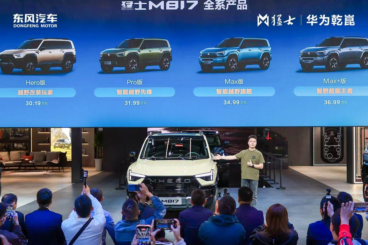 【2025广州车展:猛士M817 Hero正式上市 售30.19万元】在2025广州车展上,猛士M817 Hero车型正式上市,新车指导价格为30.19万元。外观方面,新车仍采用雄魂美学2.0的家族化设计语言,整体造型威猛时尚。新车去掉了激光雷达等。车身尺寸方面,其长宽高分别为5100/1998/1899mm,轴距为3005mm。该车的接近角和离去角同为30°,最大涉水深度达到820mm。另外,新车配备了硬核三把锁(猛士智能E锁/前后电控机械差速锁),还具备低速越野辅助+越野专家模式。内饰方面,新车搭载鸿蒙座舱 Harmony Space 5系统,配备10.25英寸液晶仪表屏+15.6英寸中控屏的组合。其中控屏下方还配备了钢琴式物理按键,可对空调系统等进行控制。副仪表台部分还设有无线充电装置、钟表以及把手等。动力方面,新车仍搭载1.5T发动机+电机所组成的插电混动系统,综合功率505kW,综合扭矩848N·m,配备50.4kWh电池组,CLTC综合续航1365km,百公里亏电油耗7.24L。【来自懂车帝车友圈】
