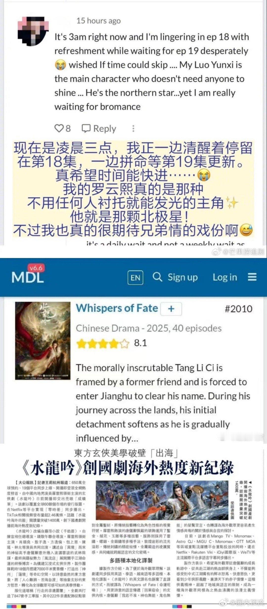 罗云熙是在扛剧和抬剧里选择了双担吧,这种双抗体质还是太有实力了,即使是在播出平台没有优势的情况下,还是在一众剧集中脱颖而出,播放量一路向好,这才是有效播剧!水龙吟播出就打破了平台记录,多次登顶卫视黄金时段收视榜,全网有效播放量破13亿,在海外也是爆火出圈,这波也是带着有效文化也是有效出海了~唐俪辞在剧中各种兜底,危及时刻及时出现破局,罗云熙在戏外也是疯狂抬剧,观众路人纷纷入场讨论演技剧情特效等等,被这个罗云熙带飞真是易如反掌!