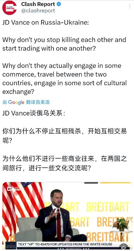 美国副总统JD 万斯今天(北京时间11月21日)谈论俄乌关系:“你们为什么不停止互相残杀,开始互相交易呢?为什么他们不进行一些商业往来,在两国之间旅行,进行一些文化交流呢?” 俄军导弹这会儿正砸向哈尔科夫的居民楼,万斯倒惦记起两国商人握手言欢。基辅地铁站里挤满躲空袭的妇女儿童,他们连明天能不能活着都是未知数,哪有心思想着去莫斯科旅游?这位副总统怕是忘了,俄乌边境早被坦克碾得支离破碎,不是摆张谈判桌就能瞬间愈合的。 他这话表面呼吁和平,实则把侵略者和受害者硬搅和成一锅粥。就像劝家暴受害者别离婚:“反正都住同一屋檐下,不如一起包饺子?”可炮火连天中谈商贸,根本是让乌克兰割地赔笑。马里乌波尔剧院废墟里还埋着冤魂,俄军却用乌克兰粮食换军火,这买卖能做吗? 看看现实多讽刺:俄军正用伊朗无人机追杀乌克兰平民,万斯却幻想两国艺术家同台演出。北溪管道炸裂的伤疤还在波罗的海底渗油,他倒盘算起重建后的油气交易。这种脱离现实的调调,活像在殡仪馆里办联欢会。 其实美国政客突然关心俄乌“联谊”,背后藏着算盘声。中期选举迫在眉睫,选民们早看腻了军援账单上的天文数字。万斯团队最新民调显示,摇摆州民众最烦“战争通胀”,这才急着给冲突找条软着陆的捷径。可这条捷径,分明要乌克兰踩着国土沦陷区往前走。 莫斯科倒是对提议心领神会。克里姆林宫发言人立刻接话,说“始终敞开人文交流大门”——可不嘛,占领区教堂正被改成东正教分院,马里乌波尔学校强制推行俄语课,这种“文化交流”根本是吞并的包装纸。俄油商偷笑着数钞票,毕竟国际油价又涨了三个点。 最惨的还是乌克兰老百姓。第聂伯罗主妇冒着炮火排队领救济面包,耳边飘来美国政客“商贸旅行”的提议,手里土豆瞬间重得拎不动。万斯这话传到巴赫穆特战壕,士兵咬着止血带苦笑:“让俄国佬先滚出我家地窖,再谈什么双边贸易!” 欧洲盟友被这话噎得直咳嗽。柏林方面刚拨完二十亿军援,听说“停止互相残杀”差点呛着咖啡。法国外交部私下吐槽:“白宫换人如换刀,可也不能用美工刀拆导弹啊!”波兰边防军望着源源不断的乌克兰难民直摇头——这些妇孺的丈夫正浴血奋战,难道要他们和毁掉家园的凶手称兄道弟? 其实俄乌之间何尝没有过蜜月期?2014年前两国免签畅通,哈尔科夫大学生周末常逛红场,如今这些记忆全碎在坦克履带下。但重建信任不是强行拉郎配,得先从停火撤军开始。就像医生不能逼着手术台伤员跳交谊舞,总得先取出子弹缝合伤口。 万斯团队或许觉得这是个一石二鸟的妙计:既安抚国内反战声音,又给俄罗斯递台阶。但他们选择性忽略了两件事——乌克兰人殉国者的血还没干,莫斯科的帝国野心依旧滚烫。当遇难儿童照片铺满推特时,谈“商业往来”简直像在葬礼上推销游艇。 真正该推动的不是什么虚假联谊,而是让侵略者滚回老家。黑海粮食通道外徘徊的俄军战舰还没撤,万斯倒惦记起俄乌合拍电影?不如先让莫斯科把抢走的乌克兰孩子还回来,再把战犯送上国际法庭,这些实事比千万句漂亮话都珍贵。 眼下最讽刺的莫过于,提议“文化交流”的华盛顿,自己正对俄罗斯原油暗送秋波。印度炼油厂把俄油加工成柴油转卖欧美,白宫装看不见;欧洲某国偷偷用哈萨克斯坦标签进口俄气,万斯团队选择性失明——原来所谓“停止互相残杀”,不妨碍某些人继续发战争财。 所以别怪泽连斯基办公室反应激烈,总统顾问直接怼“建议万斯先学历史”。当美国政客在安全办公室里嚼着三明治高谈阔论时,乌克兰教师正用身体护住课本里的普希金诗篇——那些曾被两国人民共同传颂的句子,如今读来满纸都是血泪。