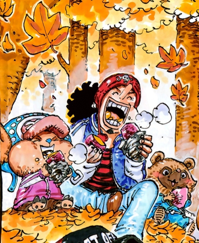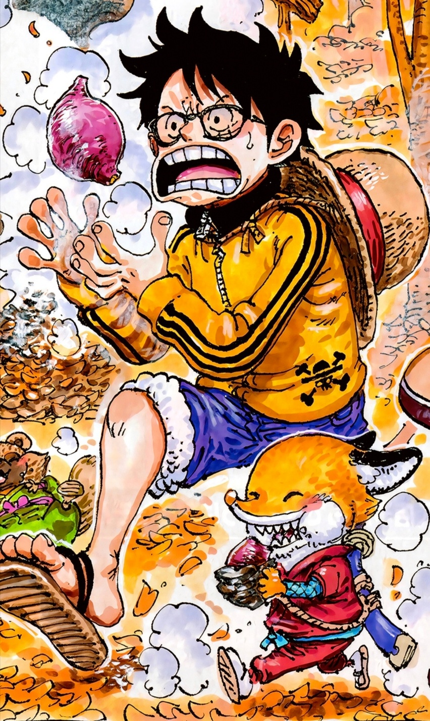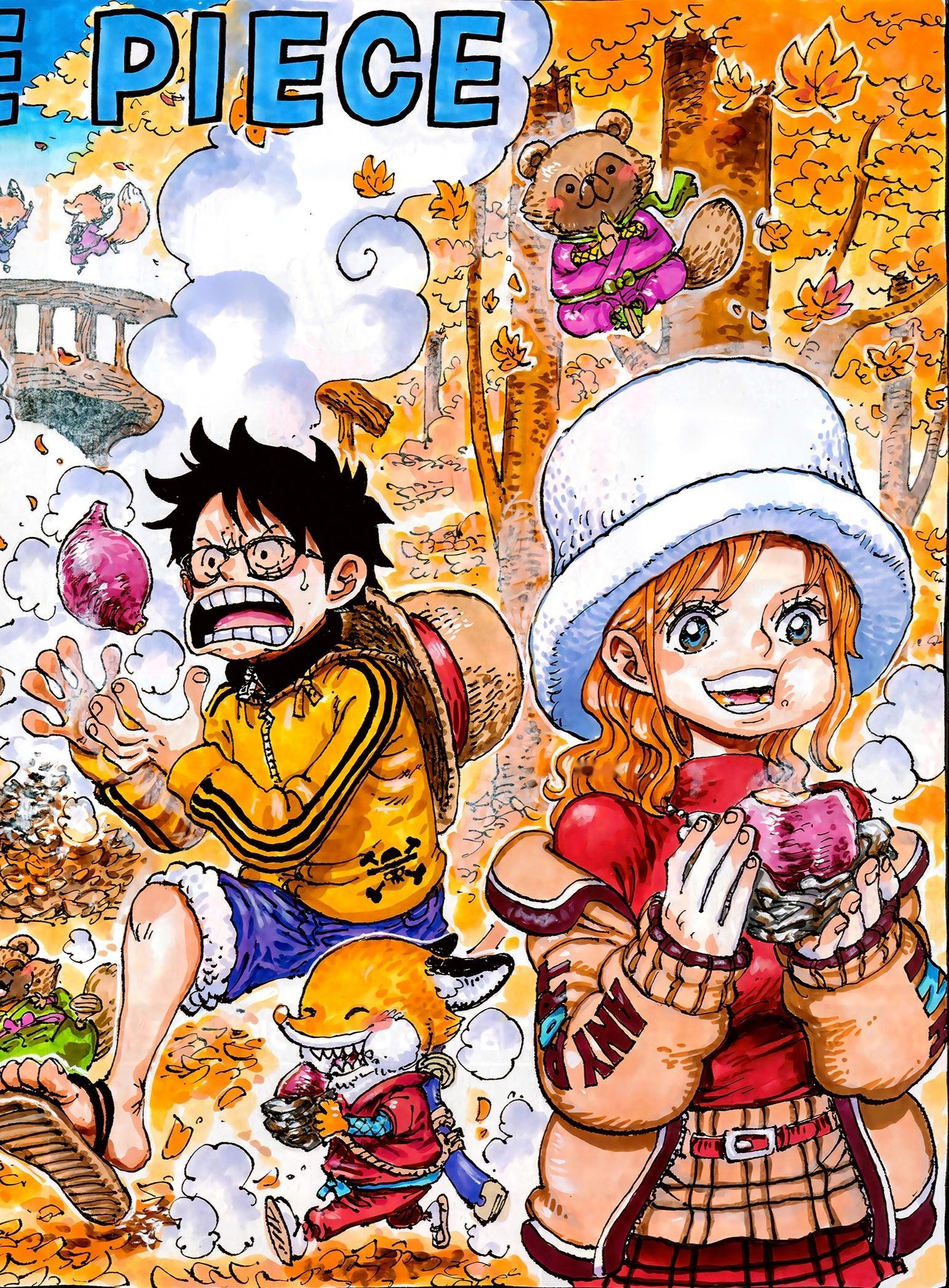 海贼王最新彩页高清版来了!心急吃不了烤红薯呀,索隆和路飞大和娜美好可爱呀~小忍,你又胖回来辣~