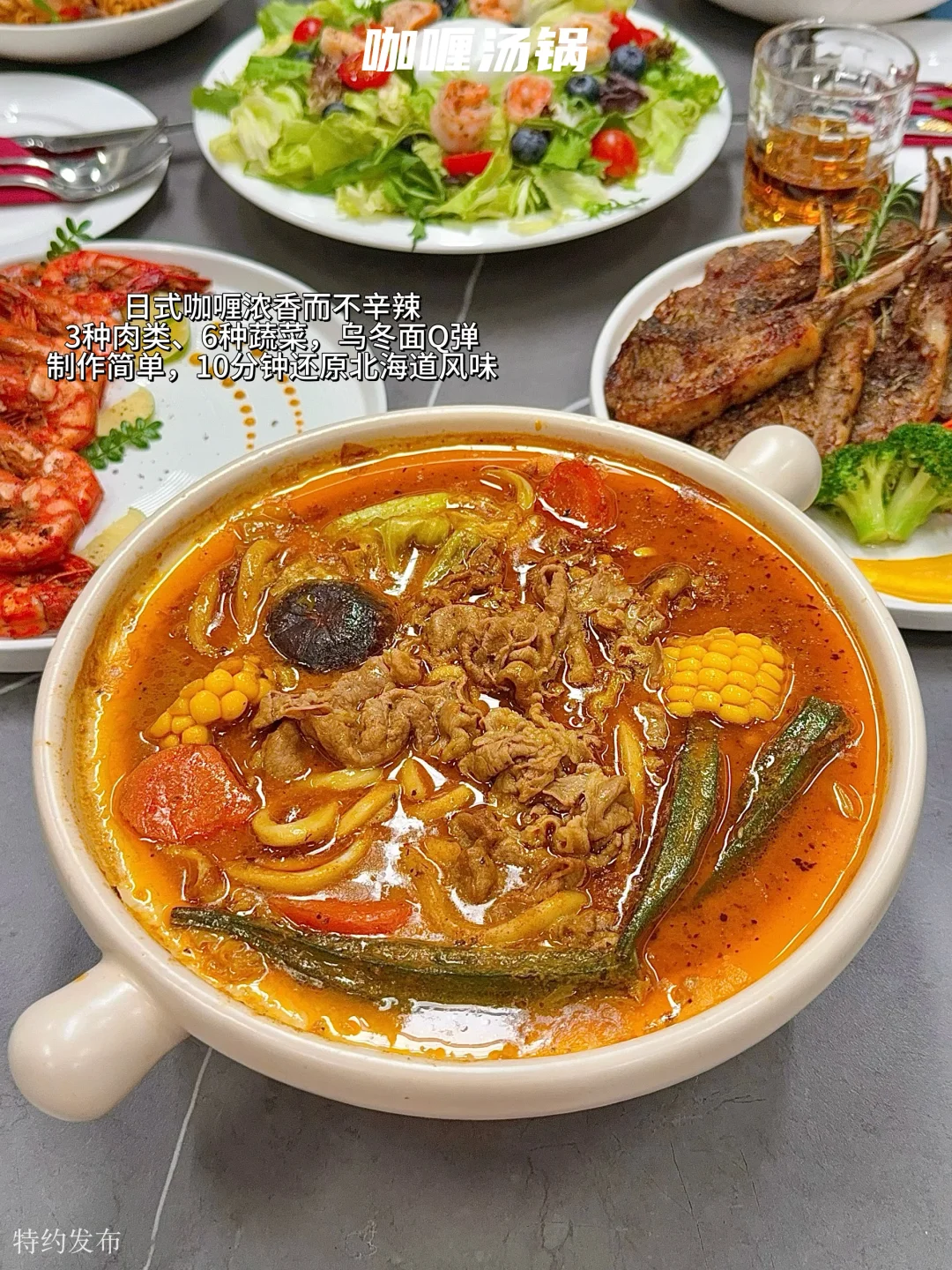 🍲咖喱汤锅更是懒人必备!荤菜素菜和汤料都搭配好了,直接煮煮就可以,有手就会。一锅热腾腾的咖喱锅瞬间就让餐桌有了温度。