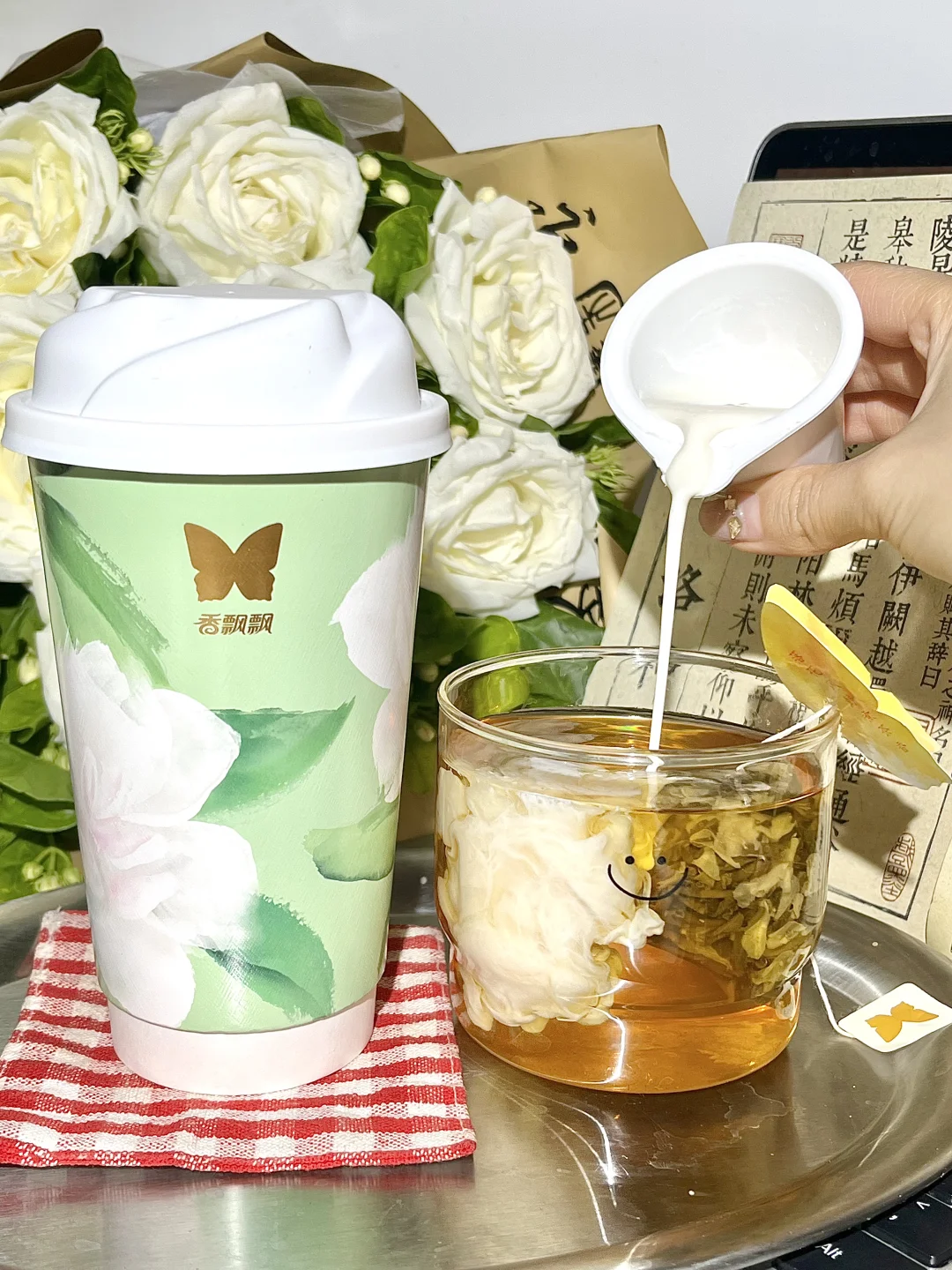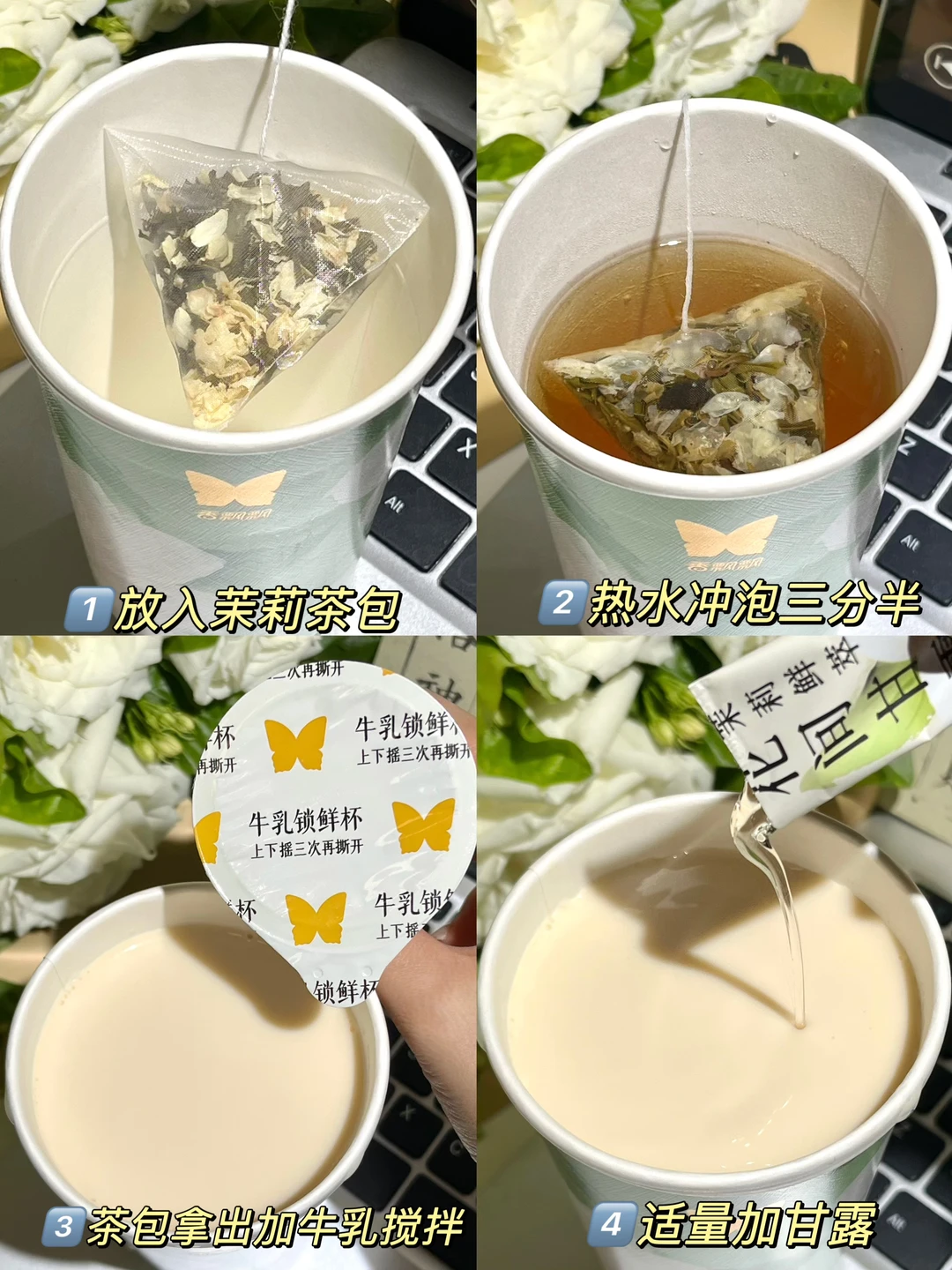啊啊还得是香飘飘研发!!茉莉轻乳茶狠狠拿捏我!!茶包尊嘟jujuju好喝😍 鲜牛乳搭配真实茉莉花瓣和茶叶!好独特! 茶包是原叶茶,不是碎茶渣,热水一冲茶香就飘出来了,看着茶汤慢慢变浓超治愈~~☺️ 茶包能再泡个几遍,自己喝奶茶,家人喝原叶茶~ 还是个戒暴水替,不爱喝白水的姐妹有福啦! 再倒入牛乳杯 每一口都能喝到茉莉花香奶香茶香…… 清爽香醇,层次感尊嘟好丰富🥹 没想到这么好喝!! 这杯我愿称之为某某别姬的平价替代!! 而且!0香精、0氢化、0反式、0植脂末、0奶精、0防腐剂、0甜味剂! 低GI的!热量170大卡~相当于半个🥑! 唇齿留香🤤谁能拒绝一杯随时随地5分钟现泡的轻乳茶呢!!