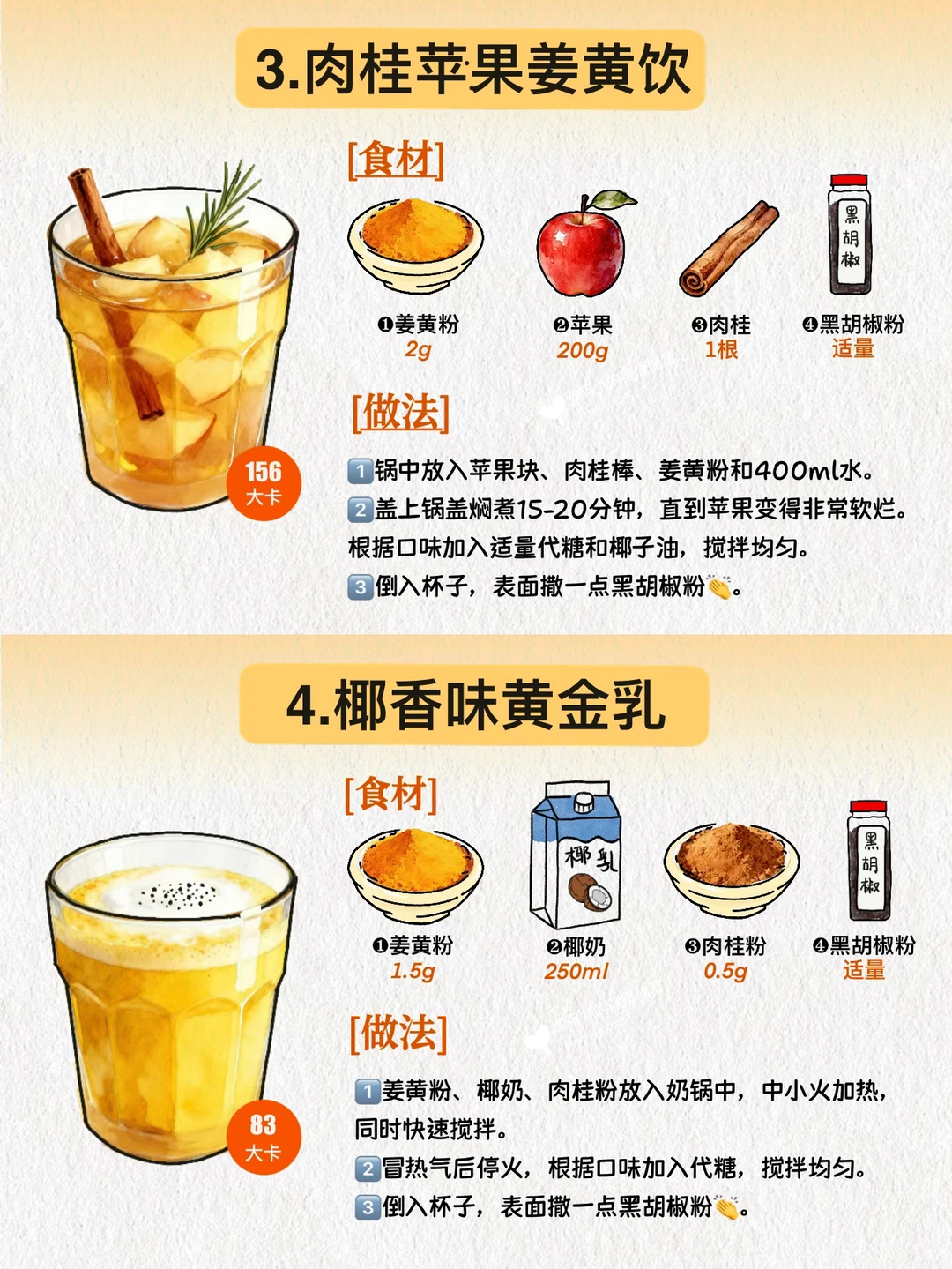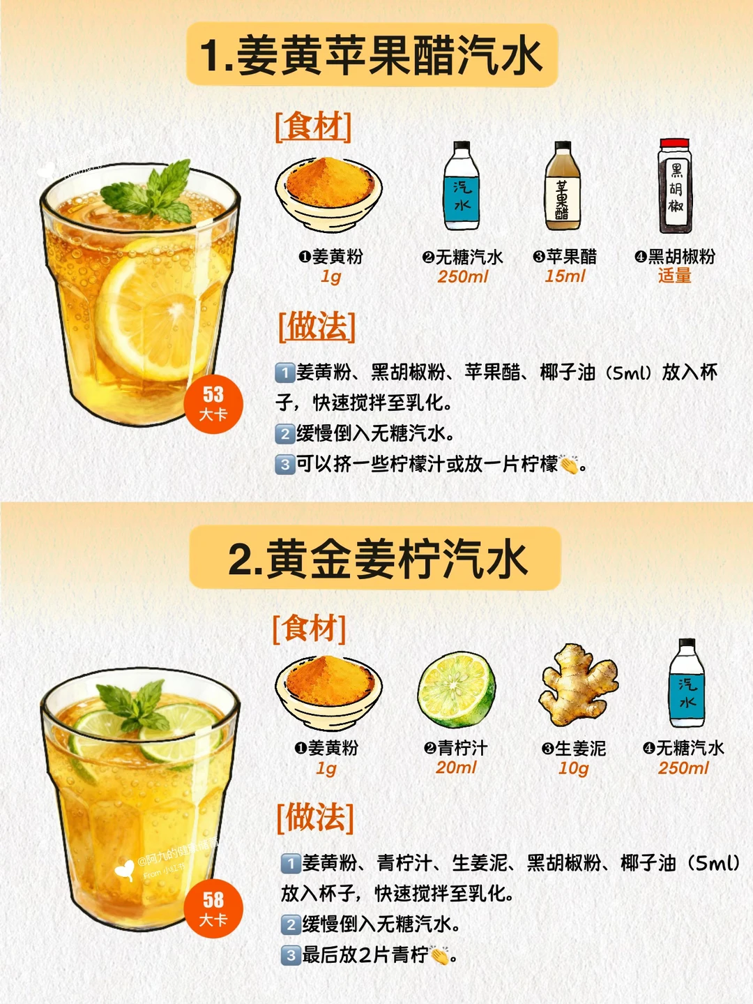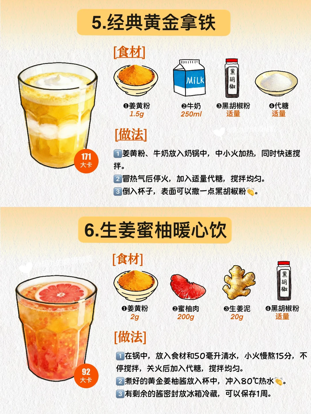 [举手R]今天分享6款低卡又美味的姜黄饮品,