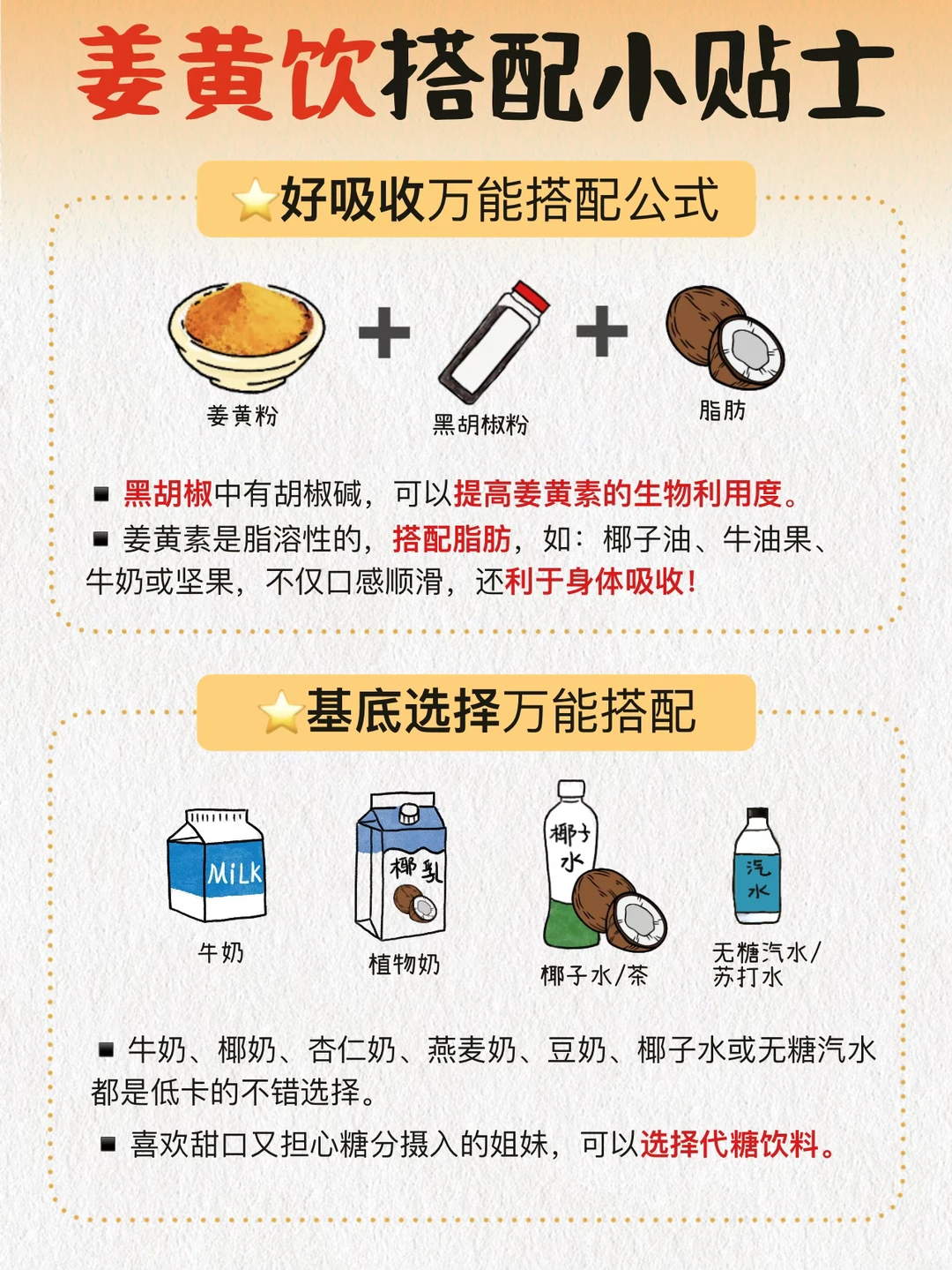 ❶ 姜黄素是脂溶性的,记得搭配优质脂肪(如椰子油、牛奶、坚果)更好吸收!
