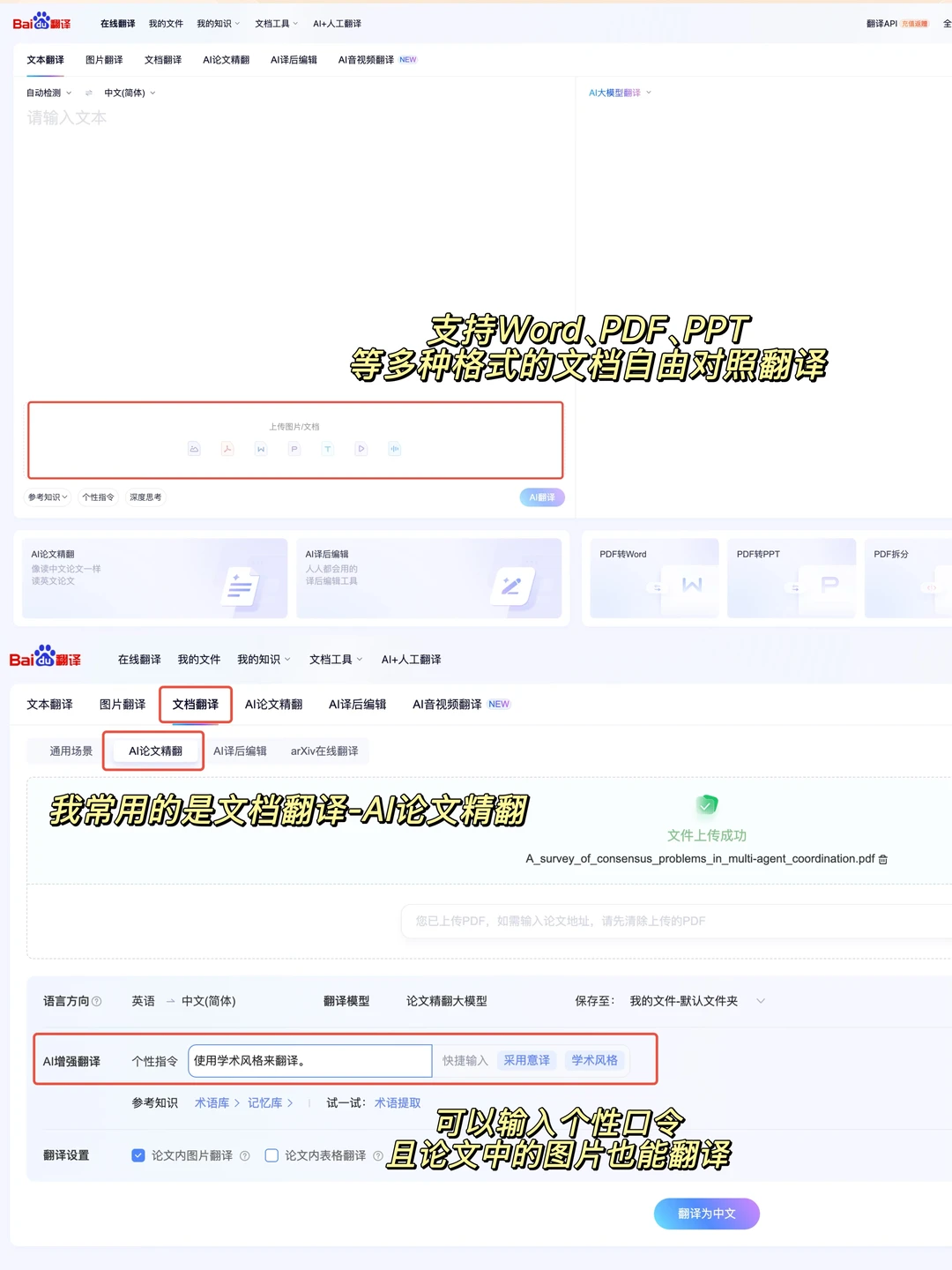 ①把文档上传到百度翻译,优先翻译首页功能,快速看摘要,引言最后一段来判断论文在做些什么,是否和自己课题有关,值不值得继续阅读