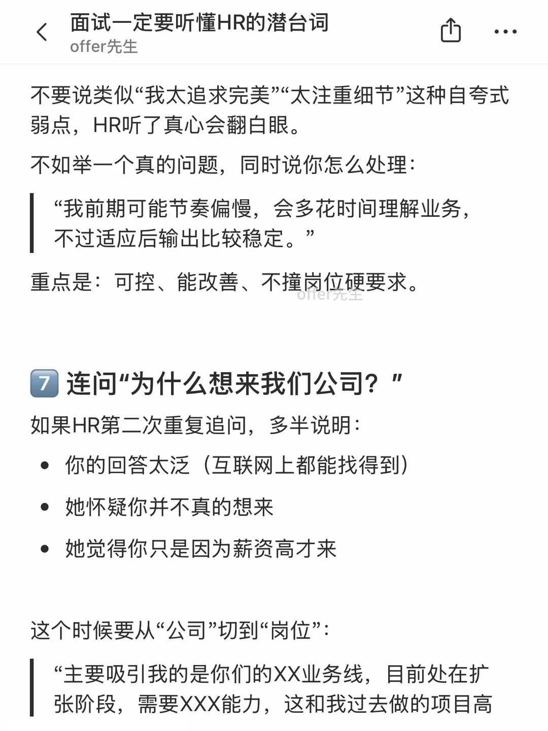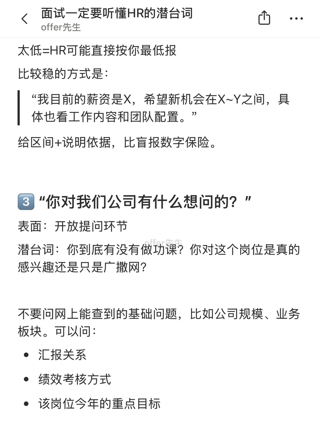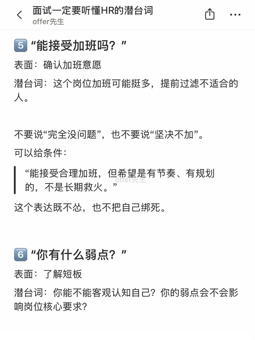 面试多了就会发现,HR很多提问其实都是“听起来像在问A,实际上想问B”。如果只按表面意思回答,很容易错失机会。 . 这篇将整理了几种面试中很常见、但容易误解的潜台词,顺便给到应对方法,方便大家现场拆招。 . 一个认真分享“找工作”干货的账号。真诚、有料、不说空话,只想用真实经历、具体方法,帮大家少走点弯路 .