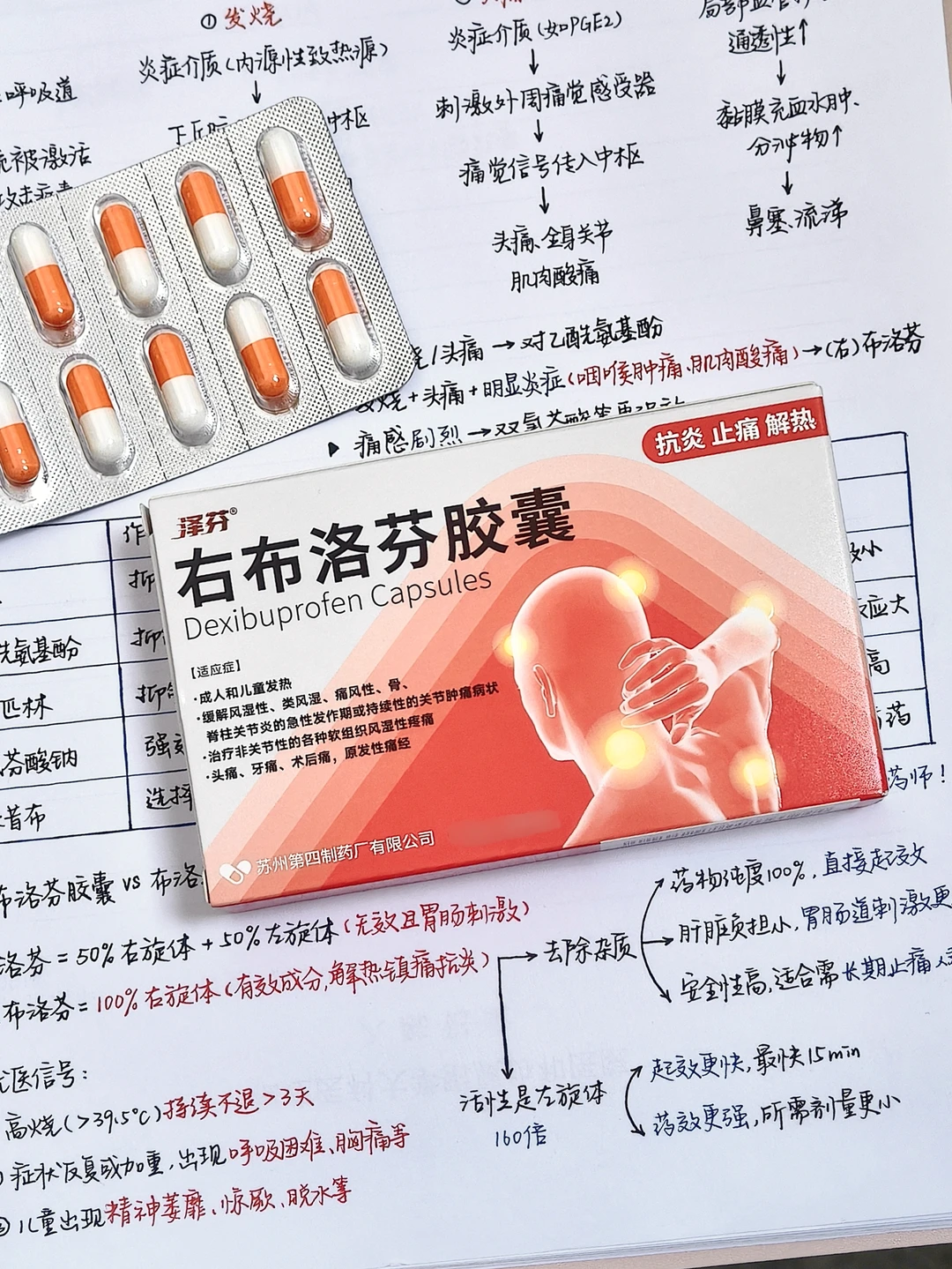 ➡️右布洛芬:布洛芬的升级版,更an全,起效更kuai。