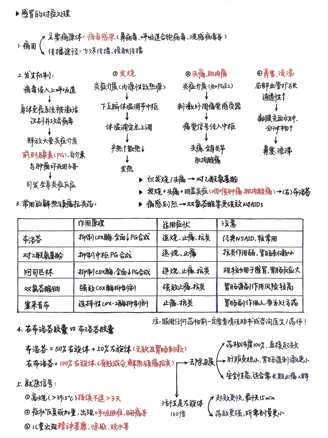 感冒对症吃💊的核心是【解热镇痛抗🔥】,常用的有: