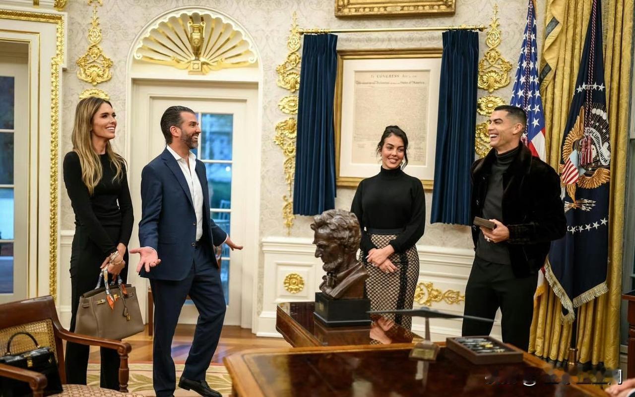 C罗[超话] 小特朗普晒出了椭圆形办公室和C罗的新视角。 特朗普正式接见c罗c罗参加白宫晚宴