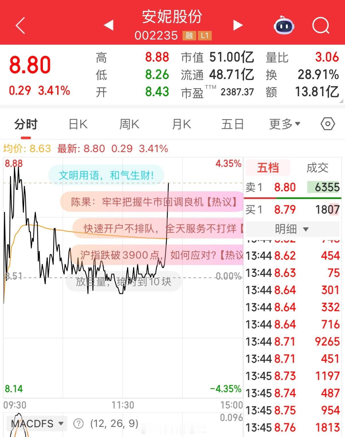 莎莎早上卖的30000股,还没有接回,千万别上去一波,等等我呀!我想尾盘再接比较