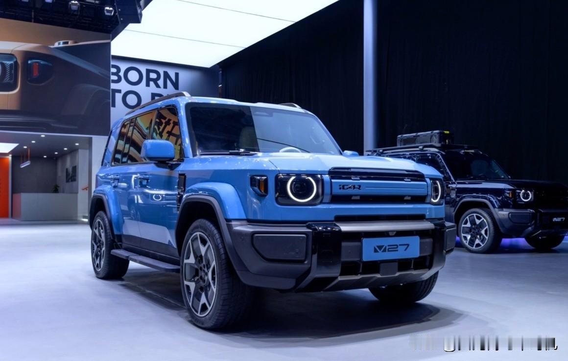 iCAR v27预热了这么久,你倒是上市啊,不然市场份额都被吃完了。 看完车展,iCar V27的表现着实超出预期!作为奇瑞品牌全新力作,这款方盒子造型的硬派越野,完成度明显高于V23,视觉冲击力十足,有路虎,陆巡,JEEP那味了。 新车搭载1.5T增程器,综合续航超过1000公里,纯电最高也能跑200公里,关键还能“喝92号粗粮”。细节上,双纵置天窗、门板织物材质都挺有质感。 而后拖车钩与线管的设计,基本坐实了其准牵引资质,拉个小车到处玩耍。 猜他是瞄准20万级别市场,产品力确实有潜力切走一块细分蛋糕。设计依然是核心买点,融合了不少经典越野元素。期待明年上市后的试驾体验。 总之,车是好车,但市场不会等你,要抢先机,速度必须快、快、快开售,不然黄花菜都凉了。