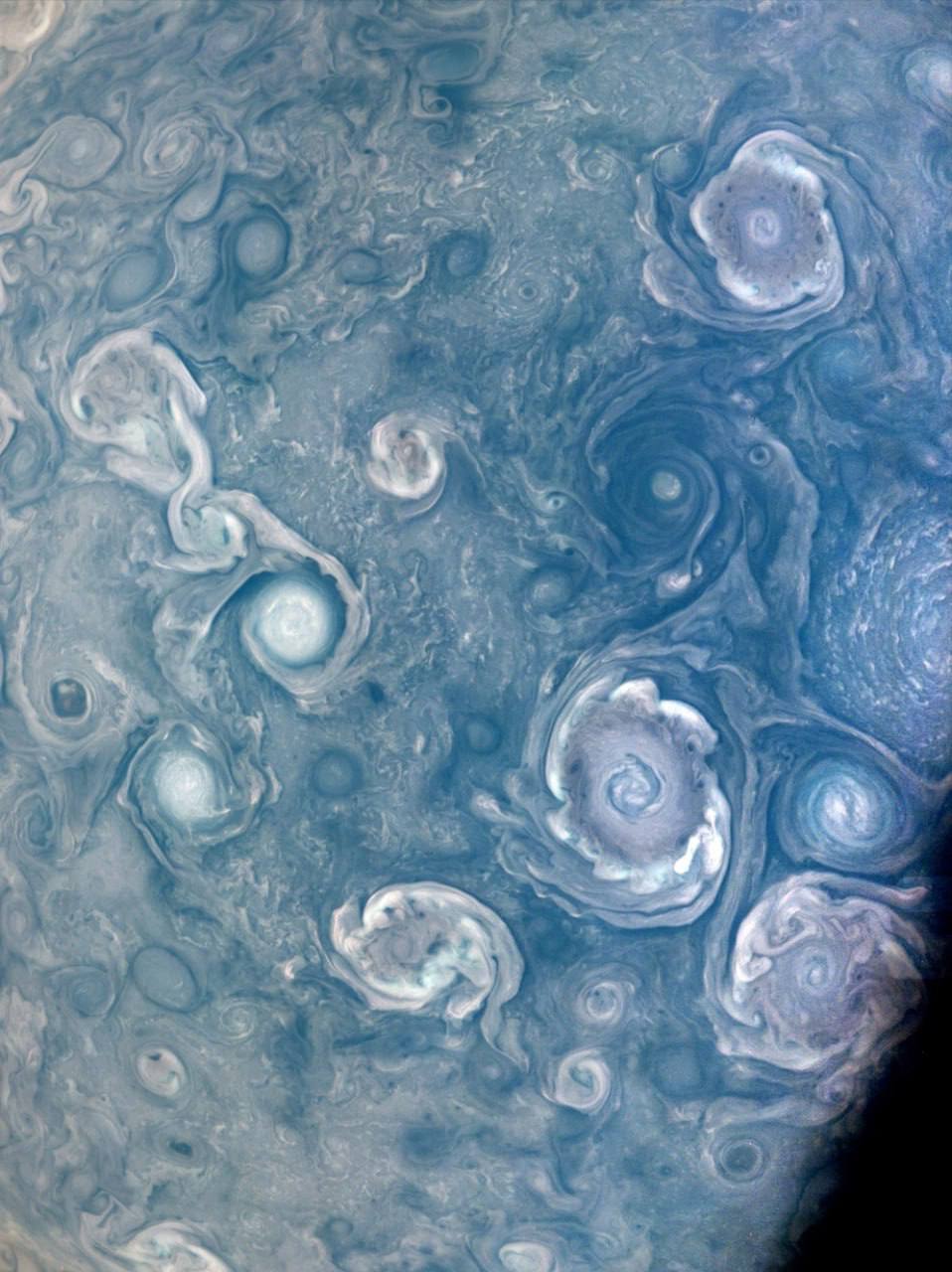 木星南极是一个风暴肆虐的地方。朱诺号探测器从52,000公里外拍摄到了这颗气