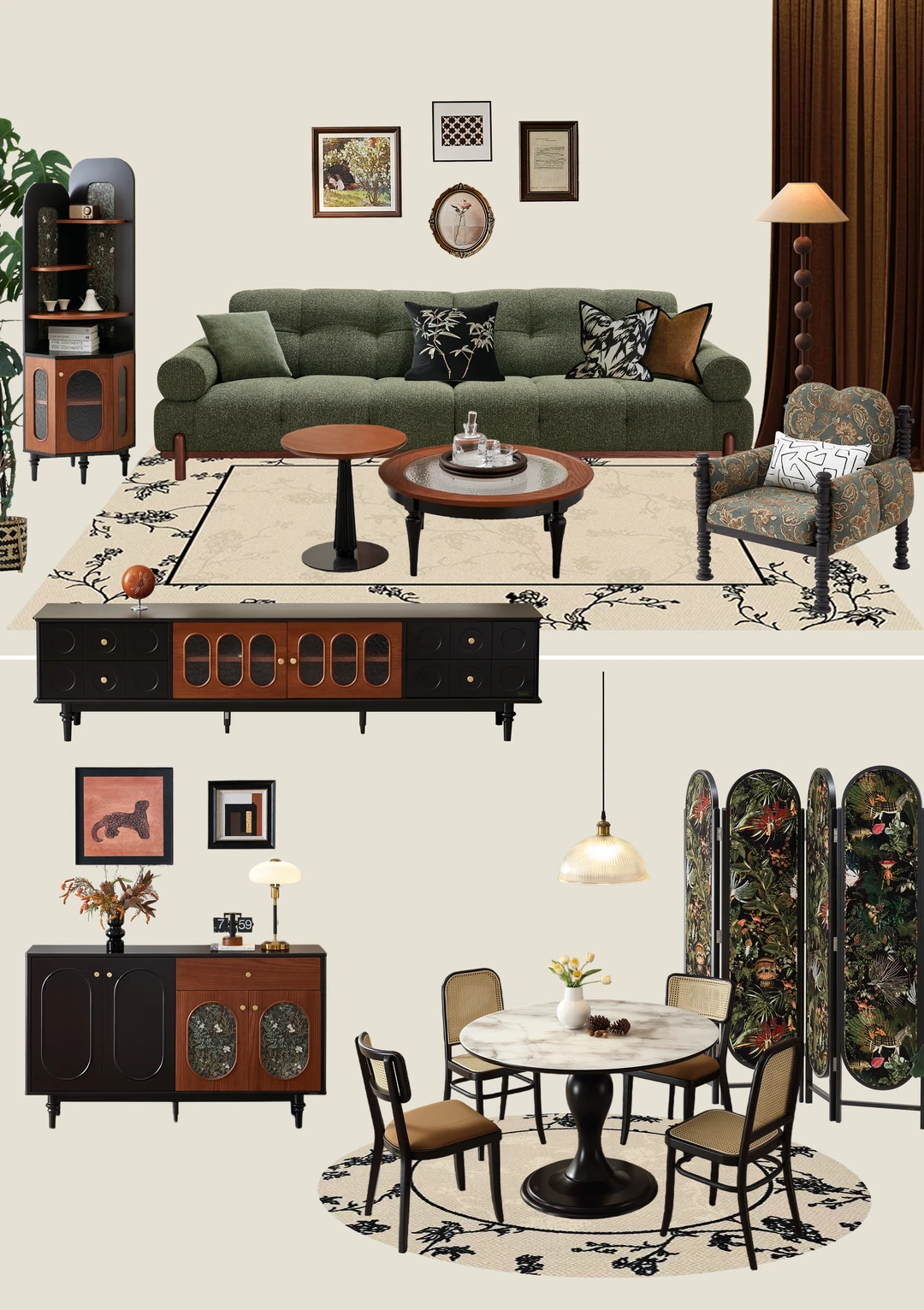 以上6套中古风搭配方案,出现的沙发、餐桌、单椅、边柜等家具都来自全友家居中古风系列新品,有喜欢的可以去全友线下门店看看实物,去实际场景中看看搭出来的效果~