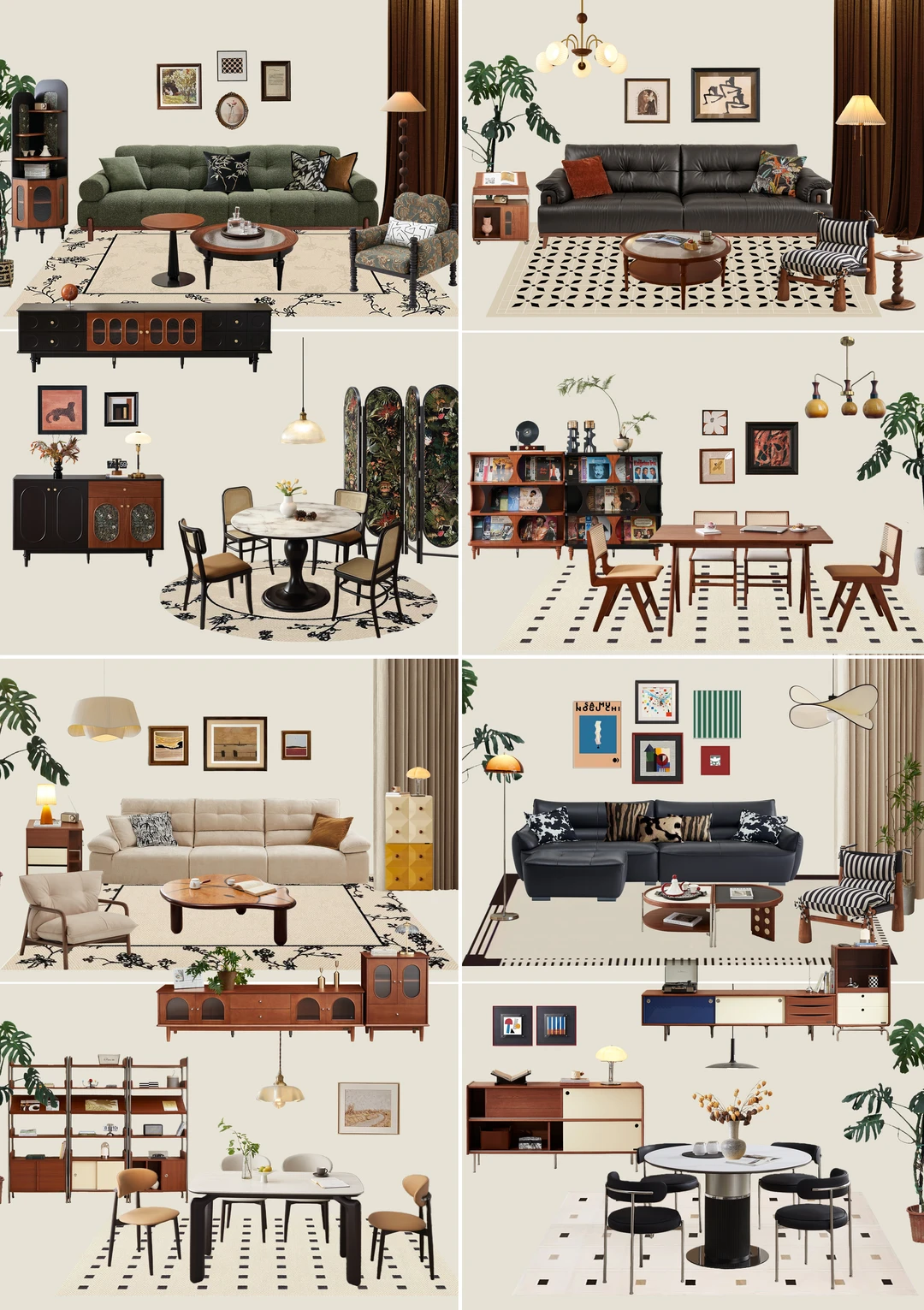 今天给大家准备了6套中古风👉软装家具搭配方案📝