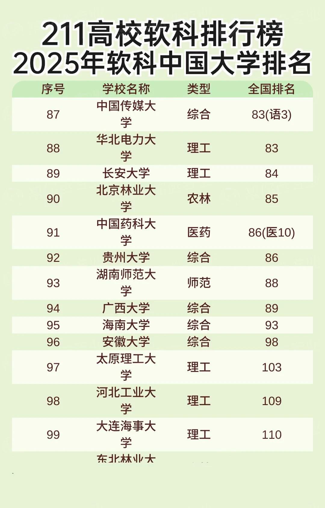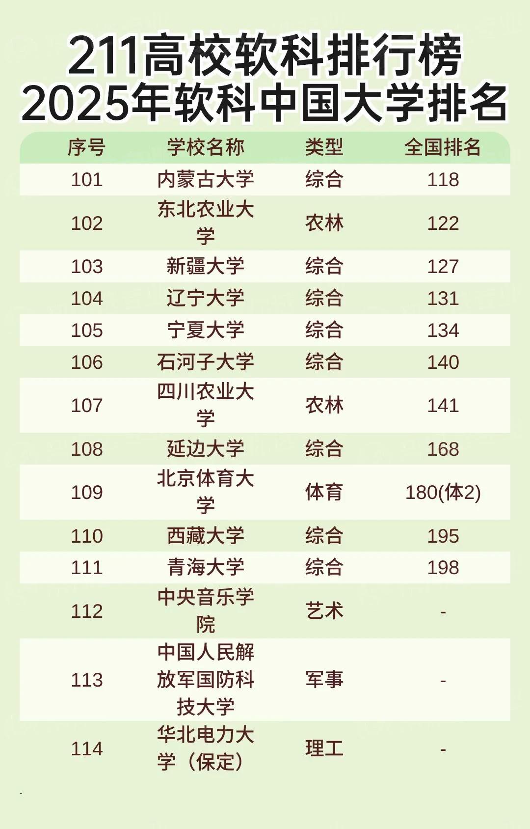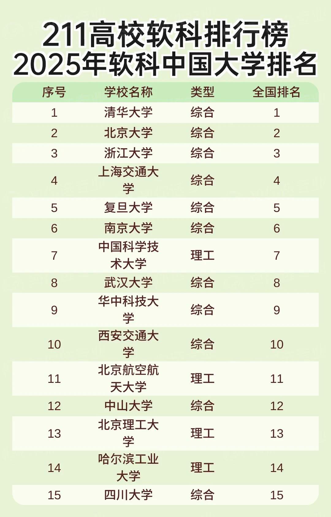 211高校软科排行榜 114所211高校排行榜 高考 考试 志愿 大学 本科 985 211 双一流 清华大学